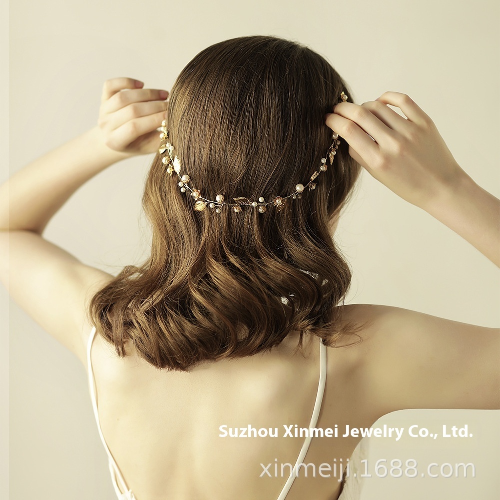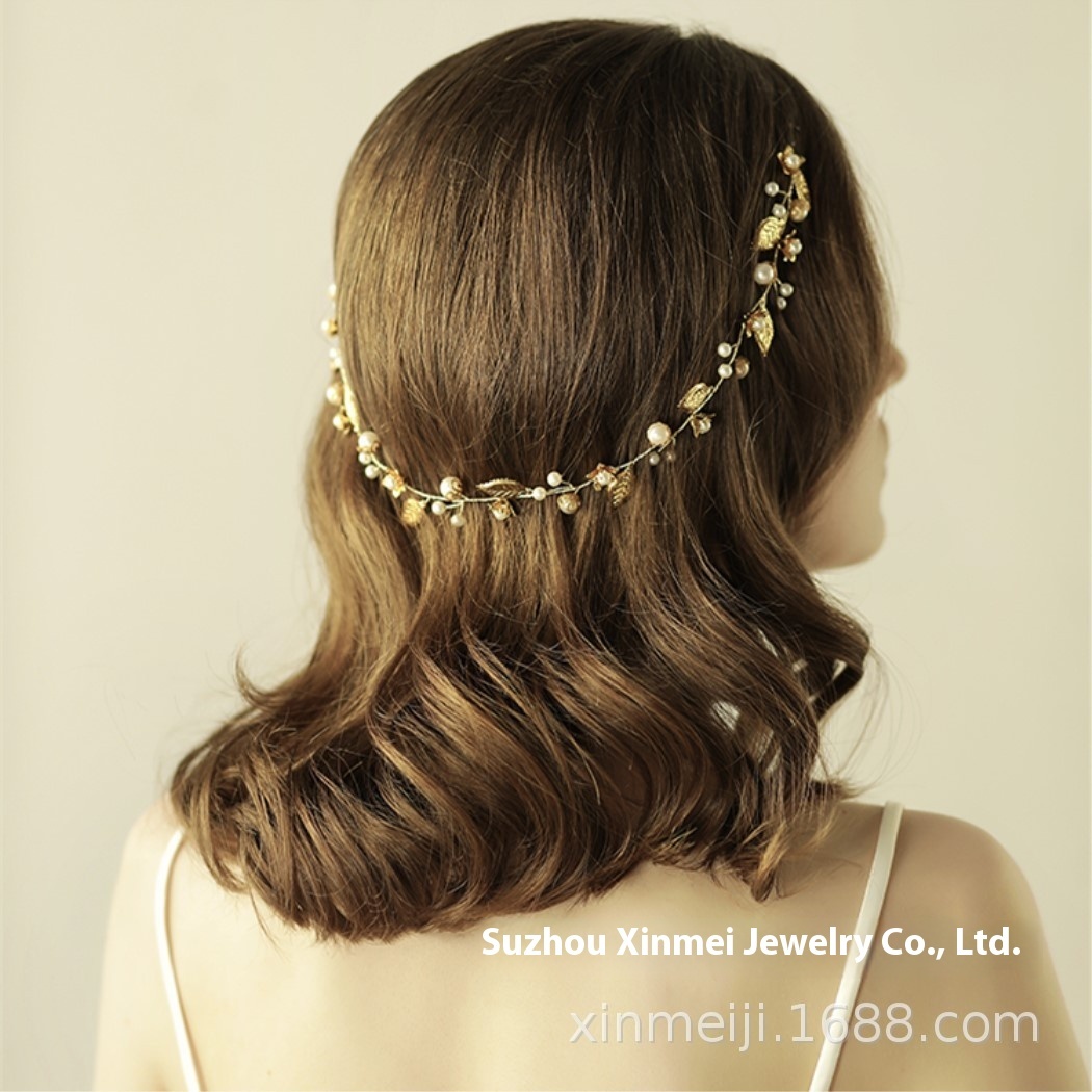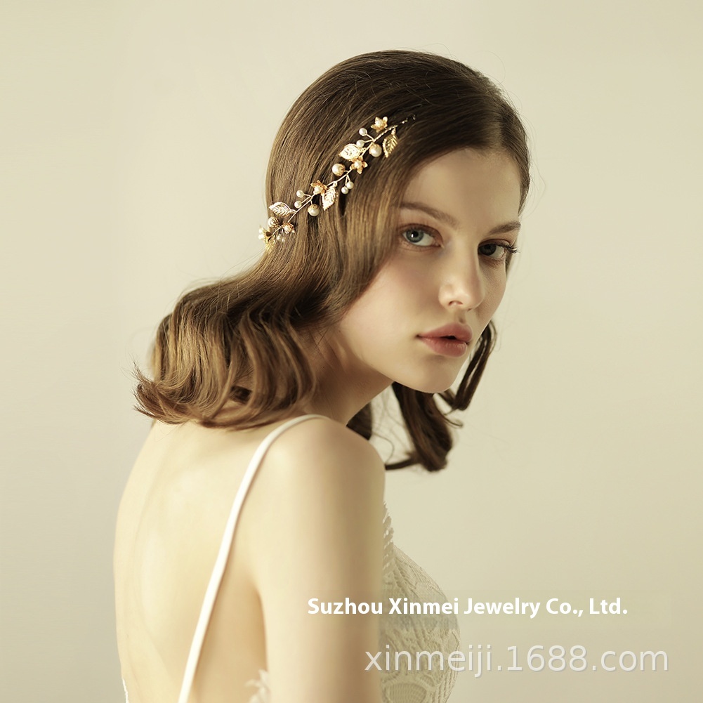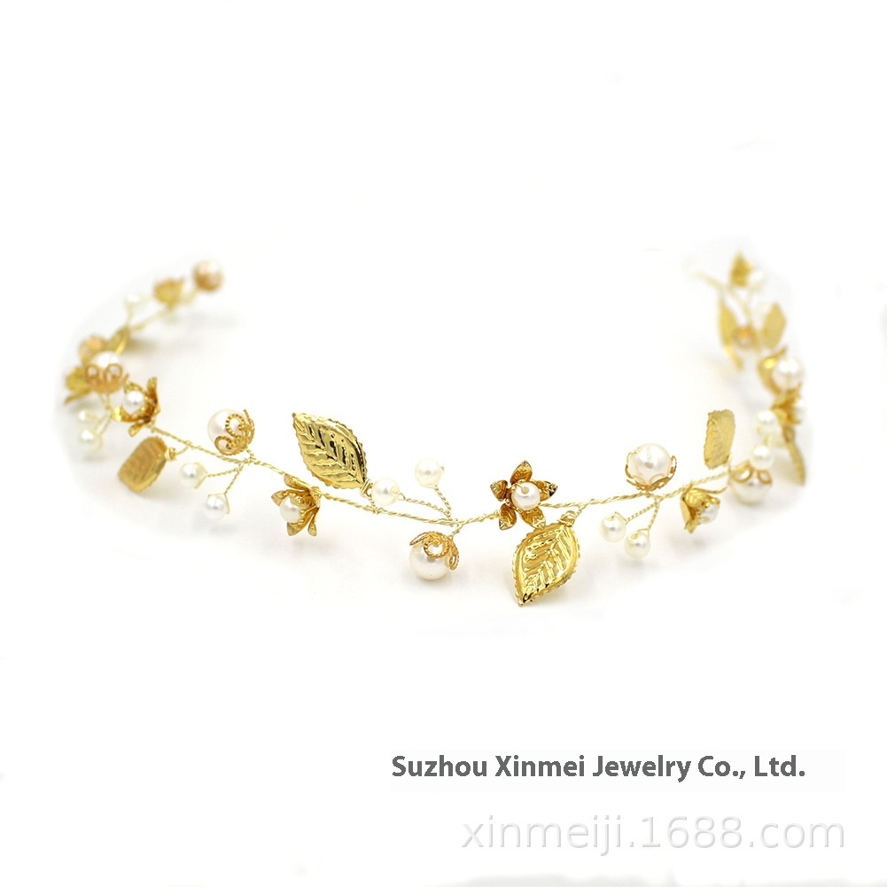 O811 Simulation Flower Leaf Bridal Headdress Sweet Pearl Headband Foreign Trade Wedding Dress Accessories