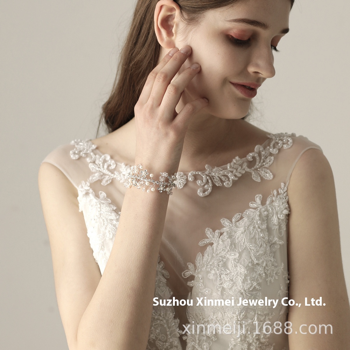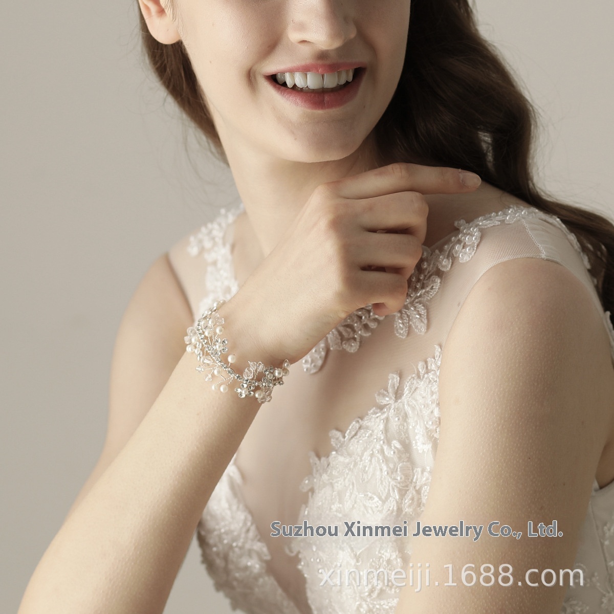 O584 Bridal Wristband Jewelry Fashion Crystal Pearl Flower Wrist Flower Accessories Jewelry