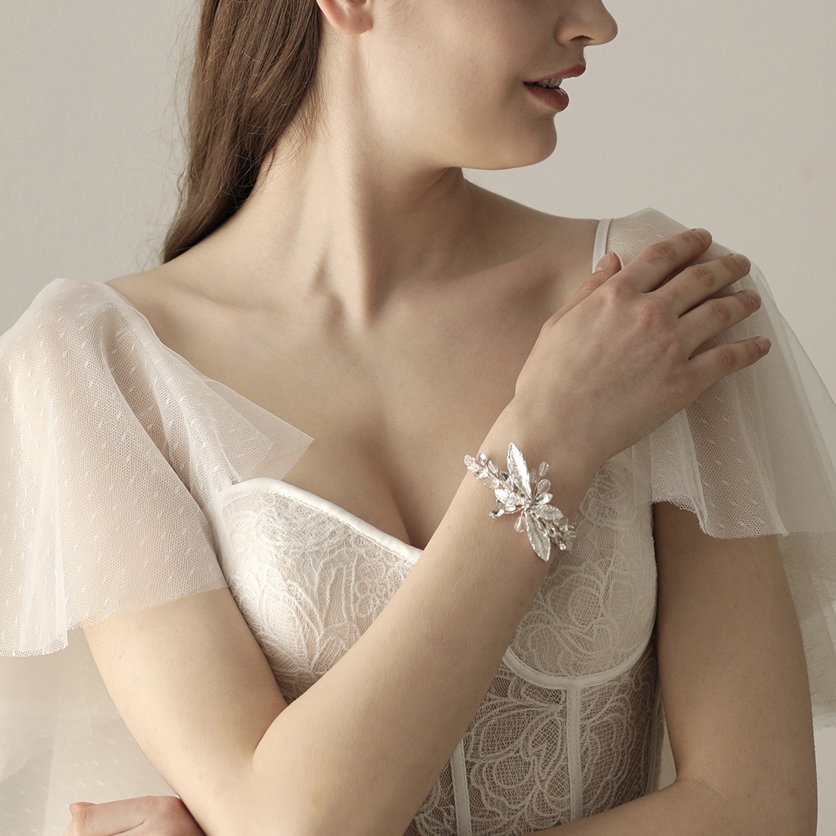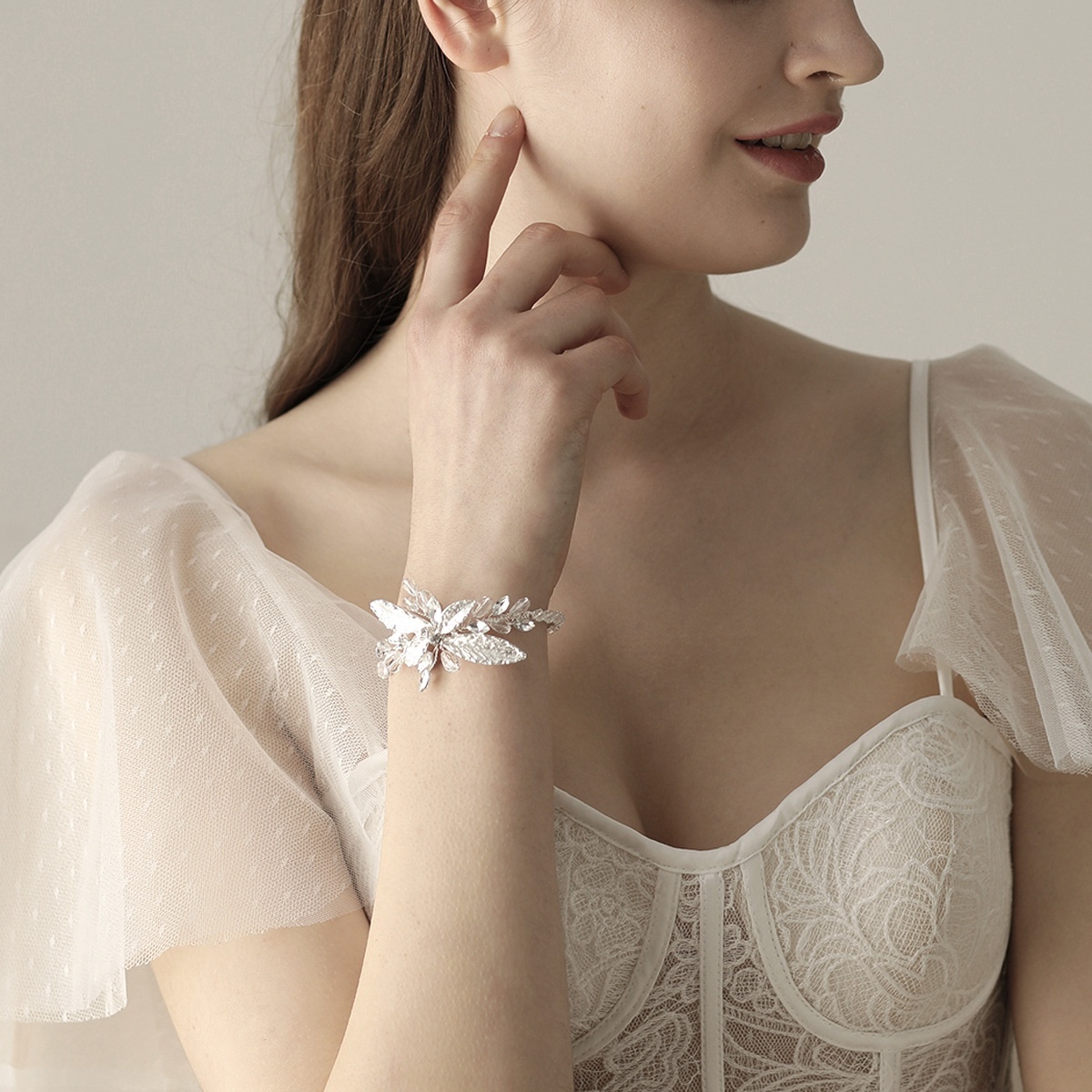 O585 Xinmeiji Retro White Lacquer Leaf Bridal Bracelet Bridesmaids Sisters Flower Wristband Wedding Wristband