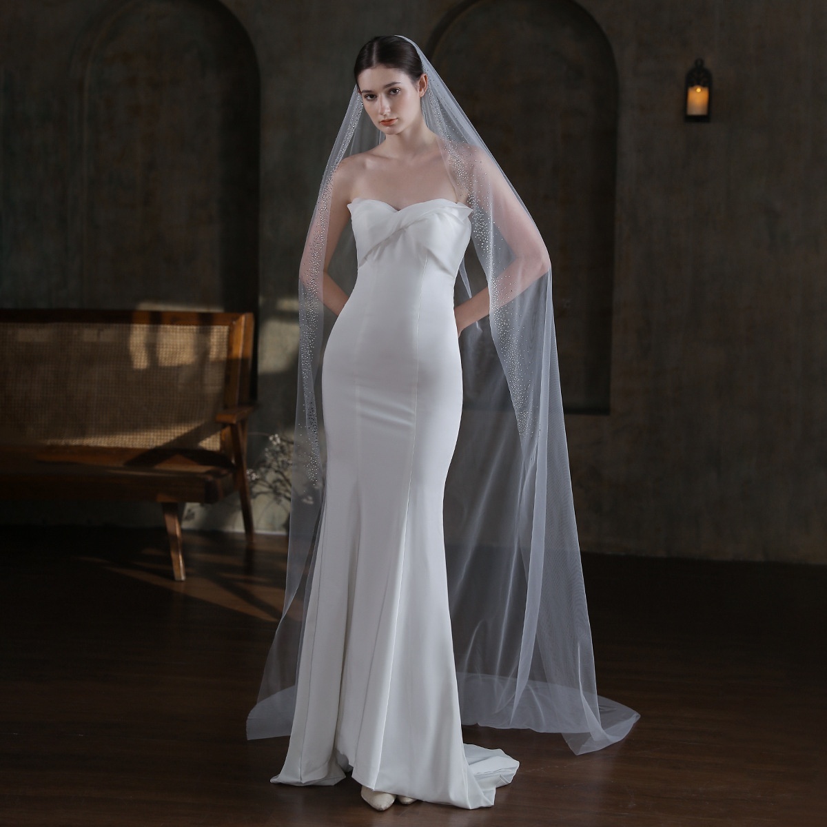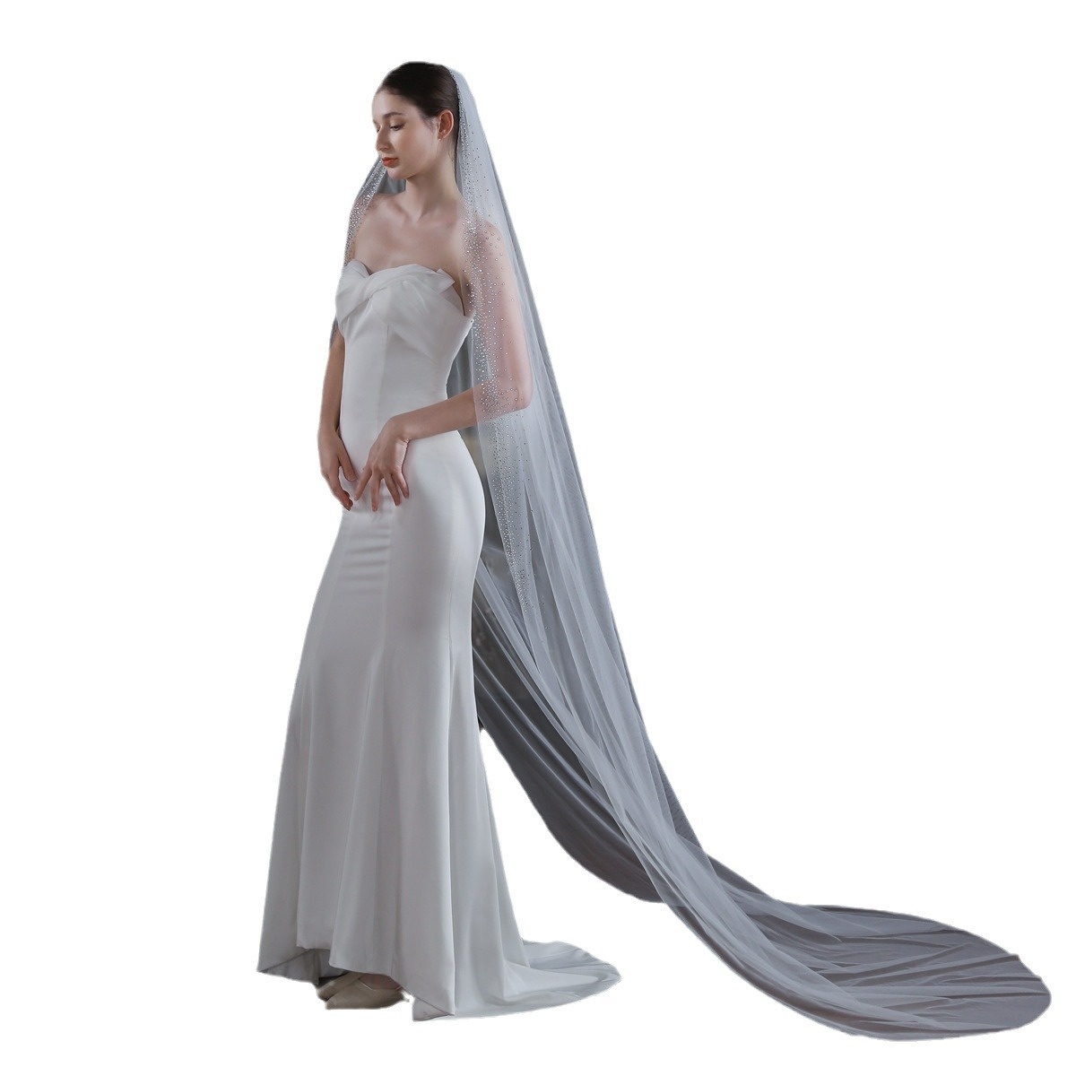 V870 Super Fairy White Single-layer Bridal Veil European And American Atmospheric Hot Diamond3-meter Long Trailing Travel Photography Headdress