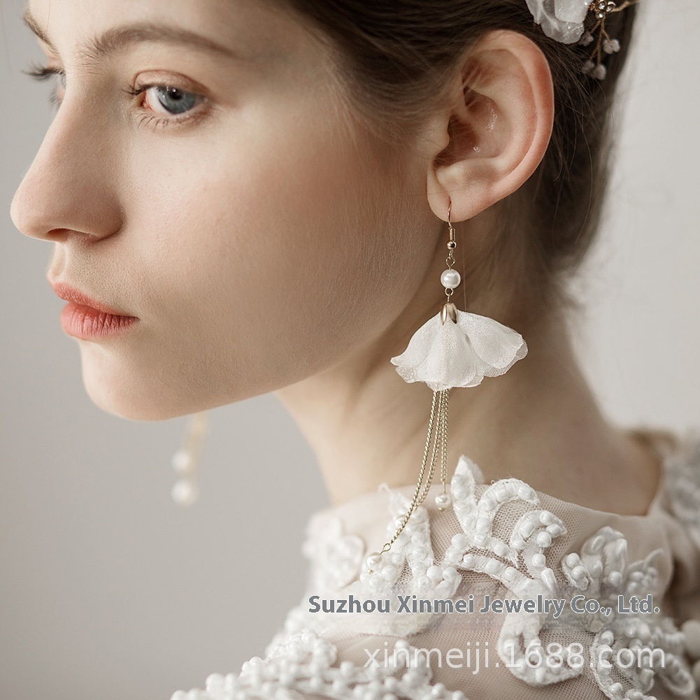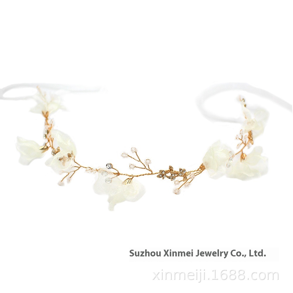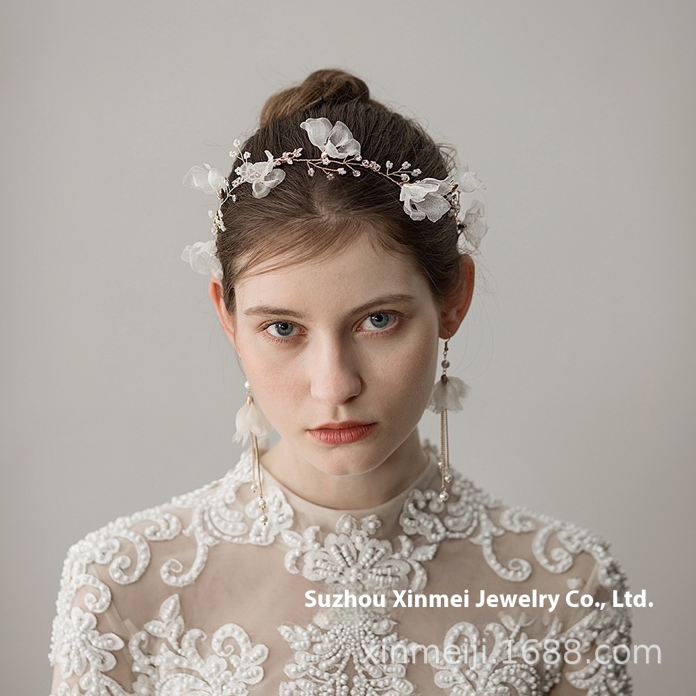 O338 Korean Bridal Headdress Super Fairy Beaded Gauze Flower Bridal Headband Earrings Wedding Dress Modeling Accessories