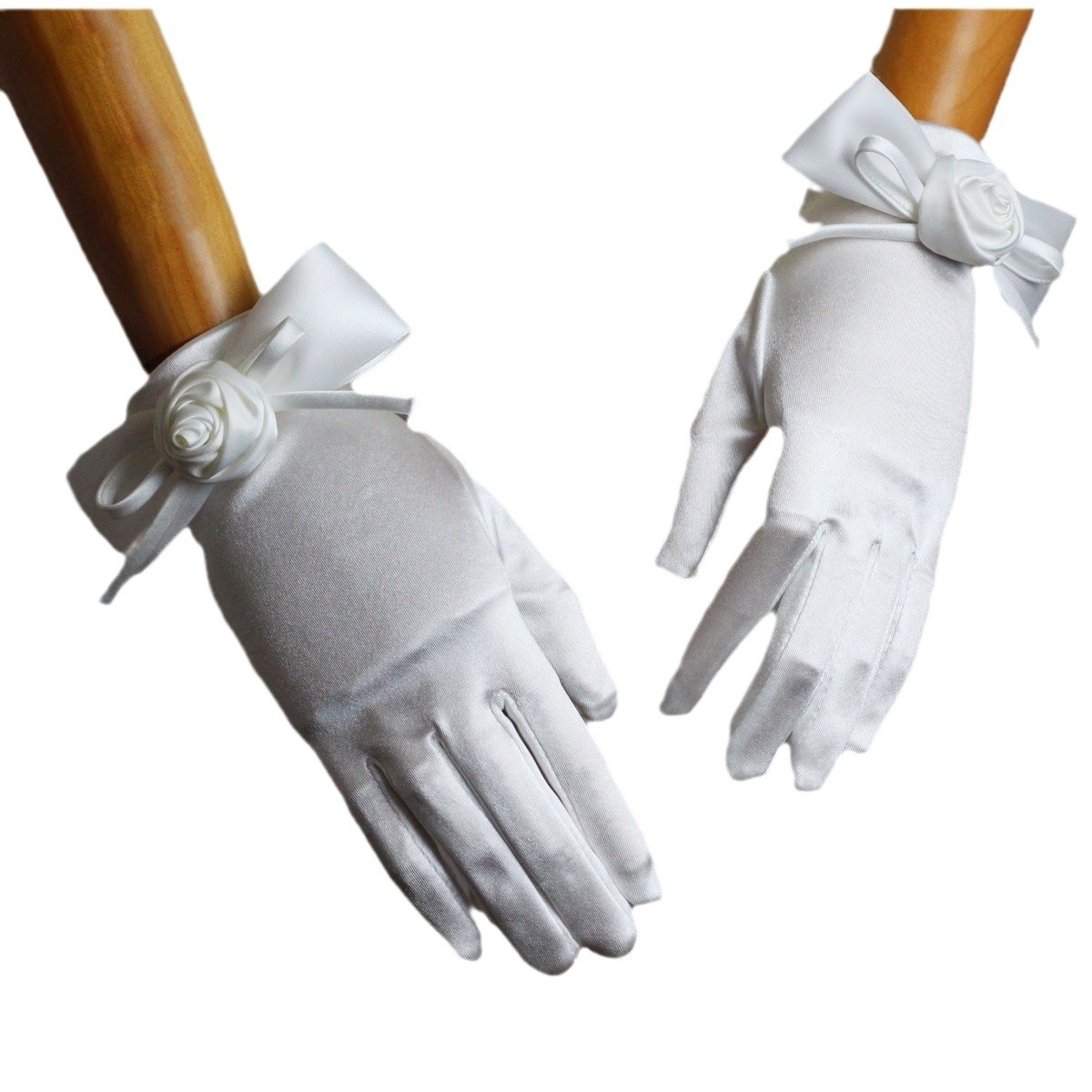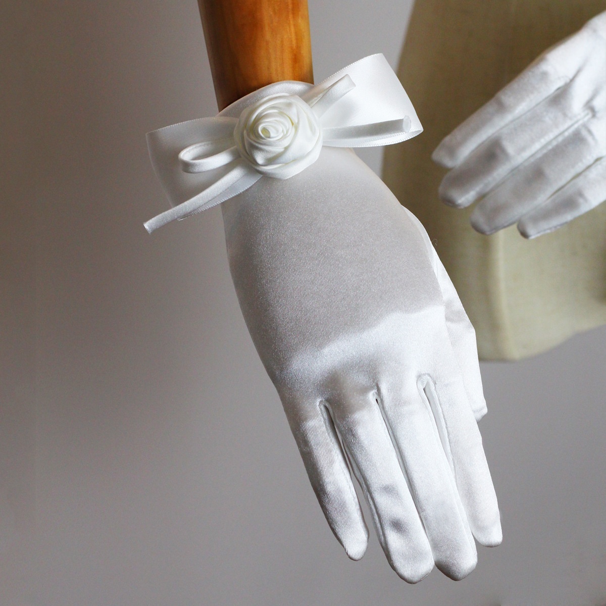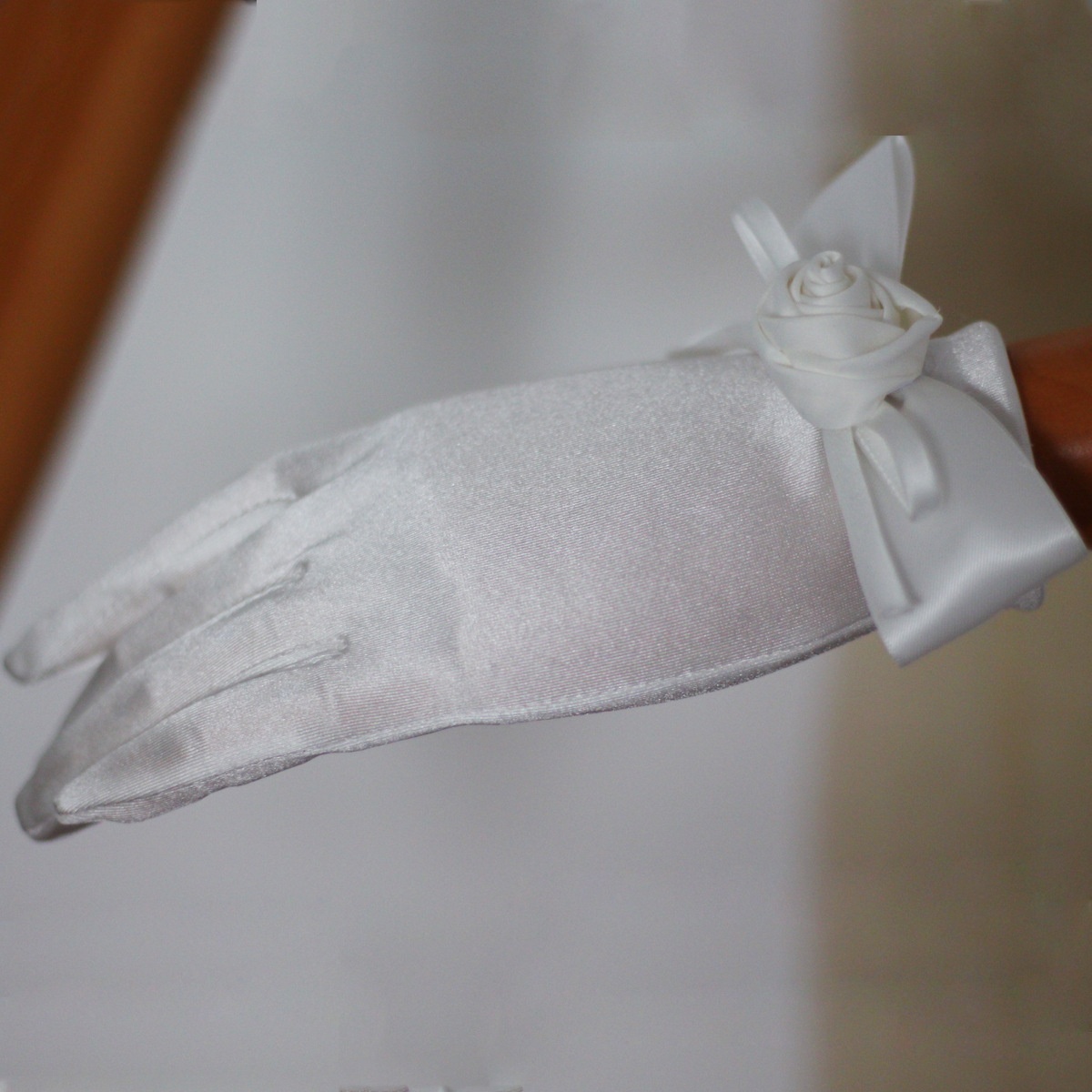 WG105 Wedding Gloves Style White Satin Bow Rose Wedding Dress Dinner Elegant Gloves