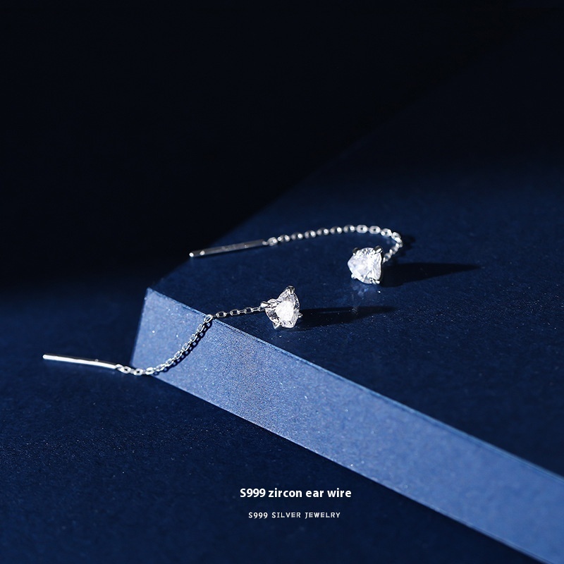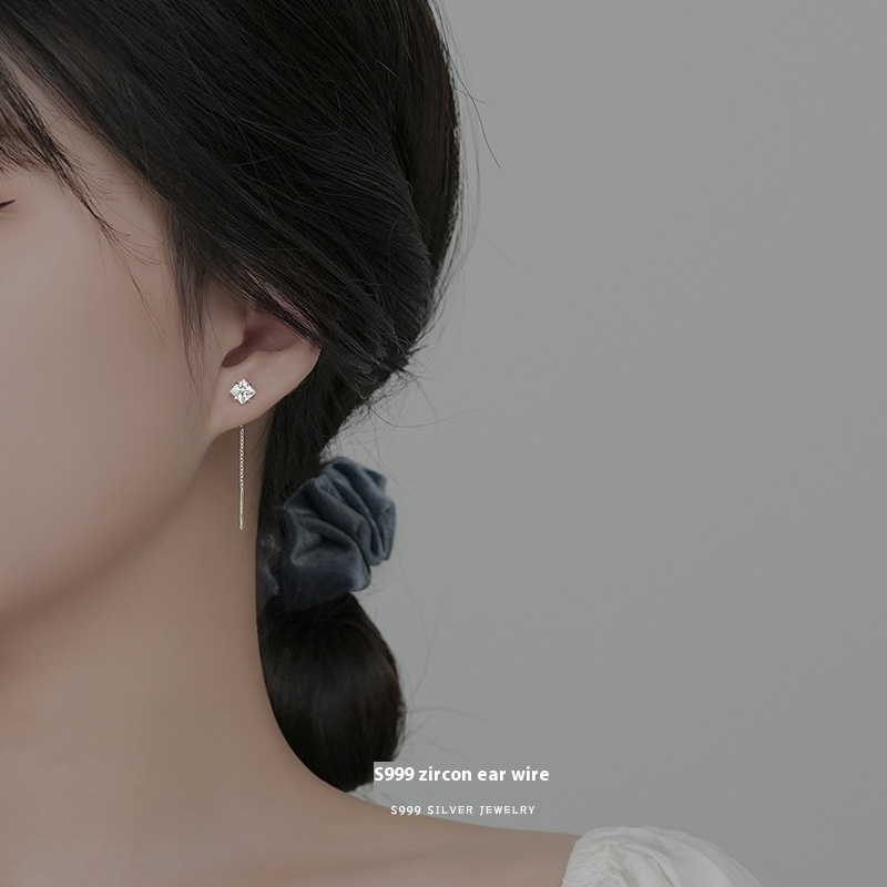 Yun Xiaoshu S999 Pure Silver Ear Line Women's Simple Niche Light Luxury Earrings Light Luxury Tassel Earrings Ear Jewelry
