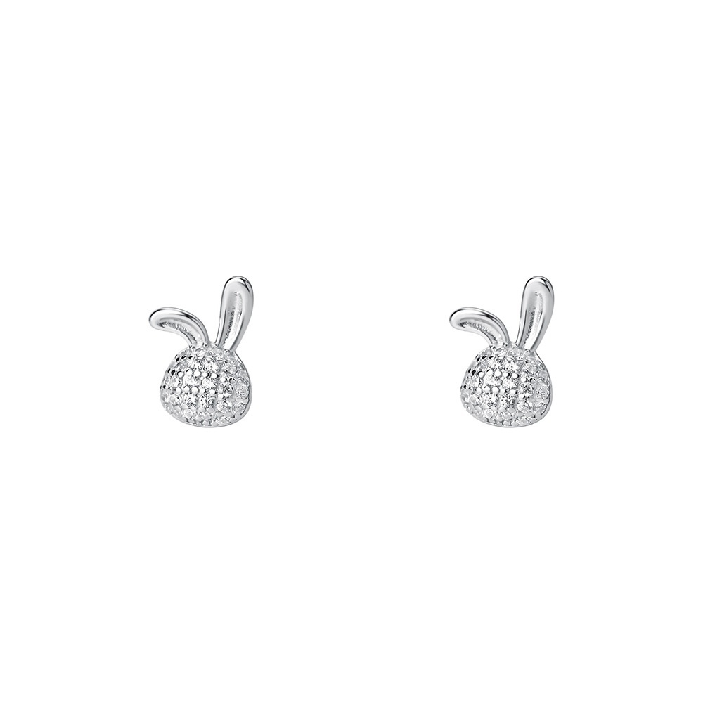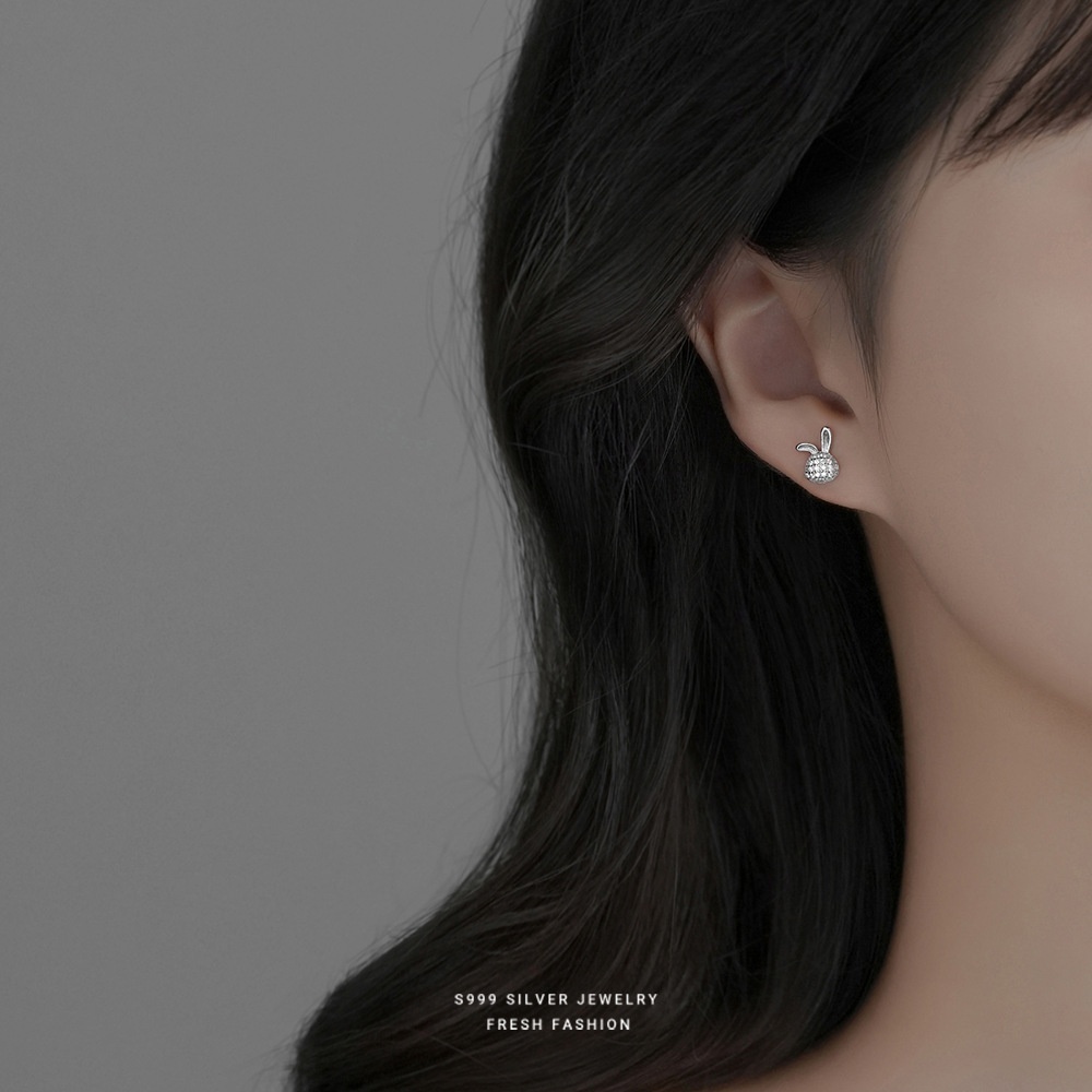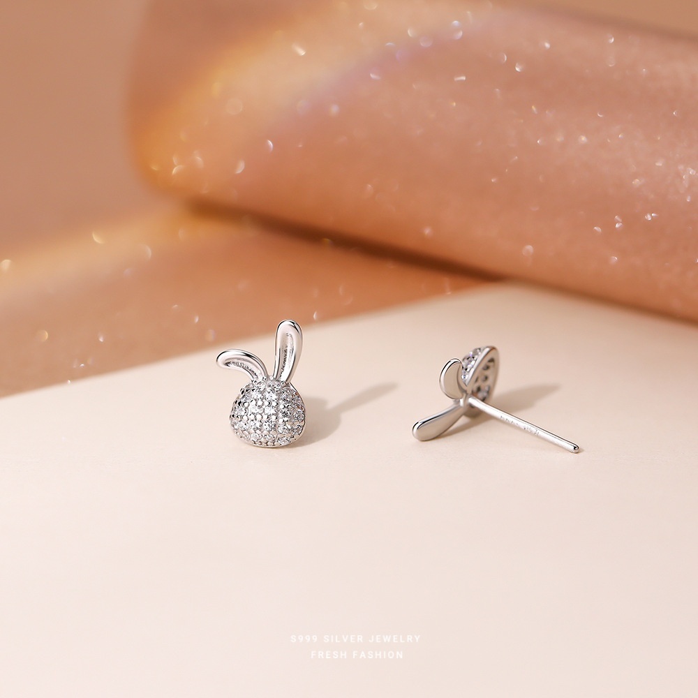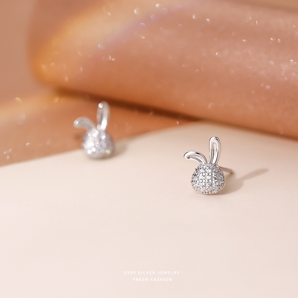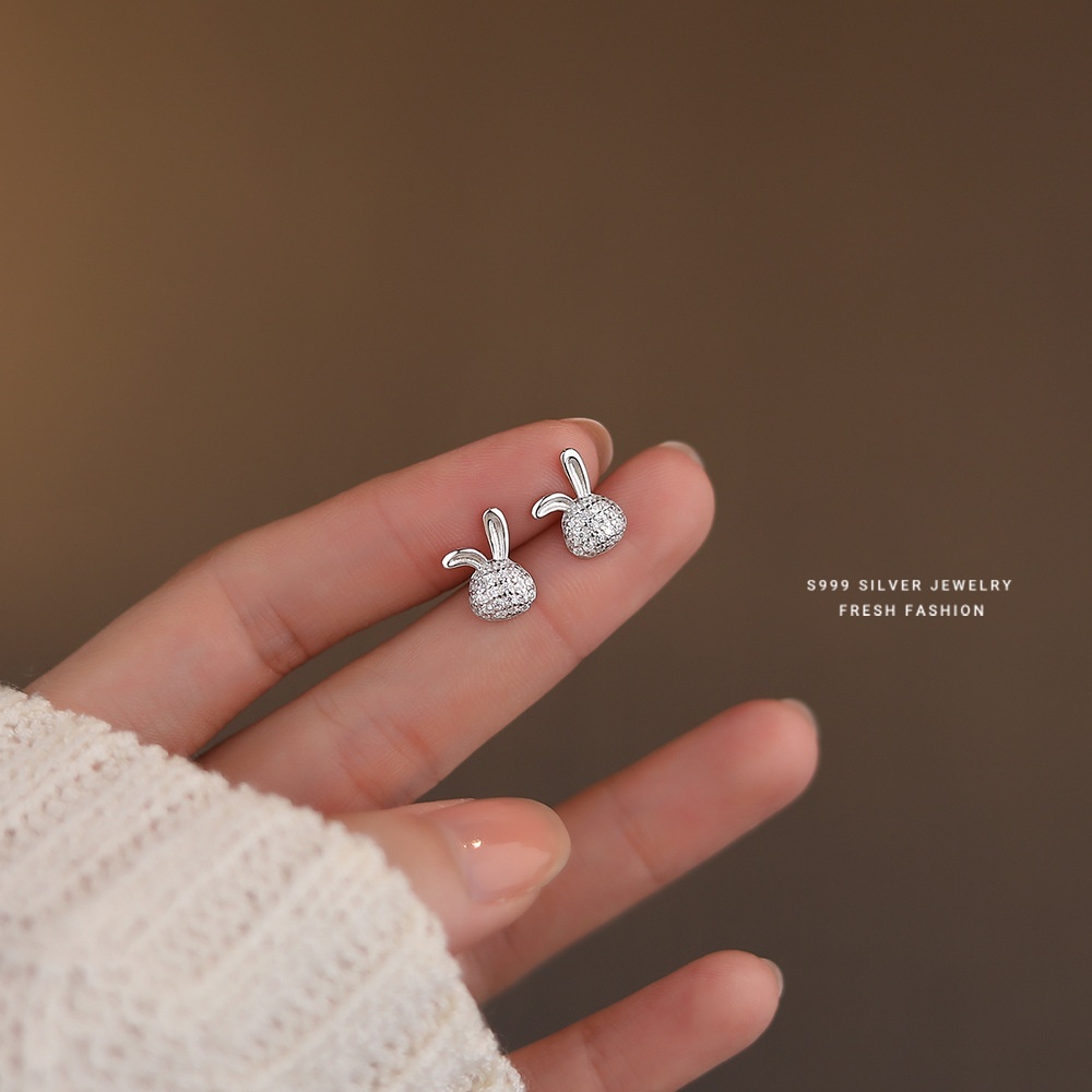 999 Sterling Silver Micro-inlaid Zircon Rabbit Earrings For Women Cute Temperament Small Fresh Niche Girlish Earrings