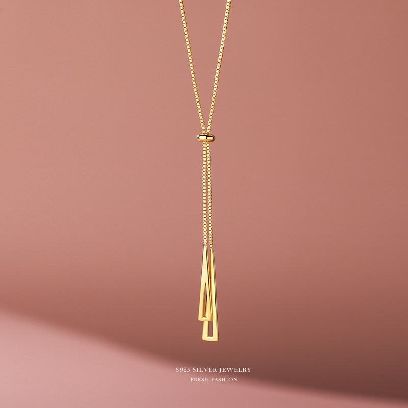 Niche Design S925 Silver Fashionable Simple Geometric Pull-out Necklace Female Light Luxury Jewelry Clavicle Chain