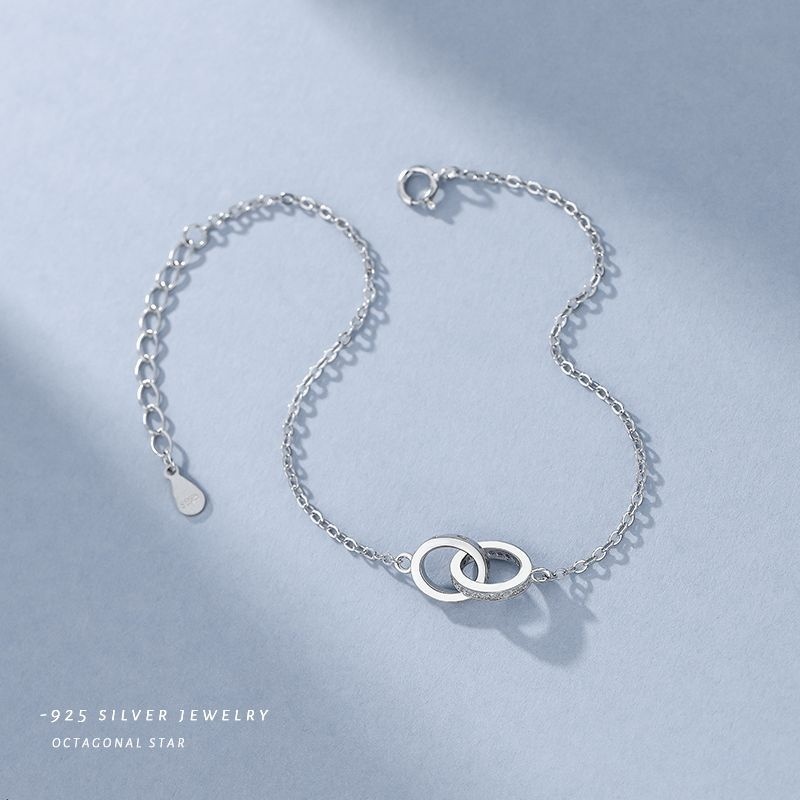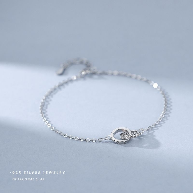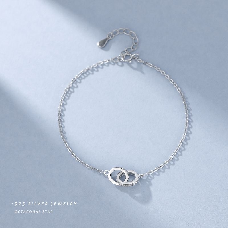 S925 Silver Interlocking Ring Inlaid Zircon Bracelet Female Fashion Geometric Double Ring Inlaid Diamond Circle Jewelry Bracelet