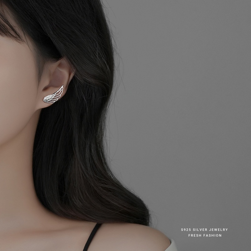 Yun Xiaoshu Sterling Silver S925 Earrings For Girls Angel Wings Ear Clips Wings Ear Hooks Classic Earrings