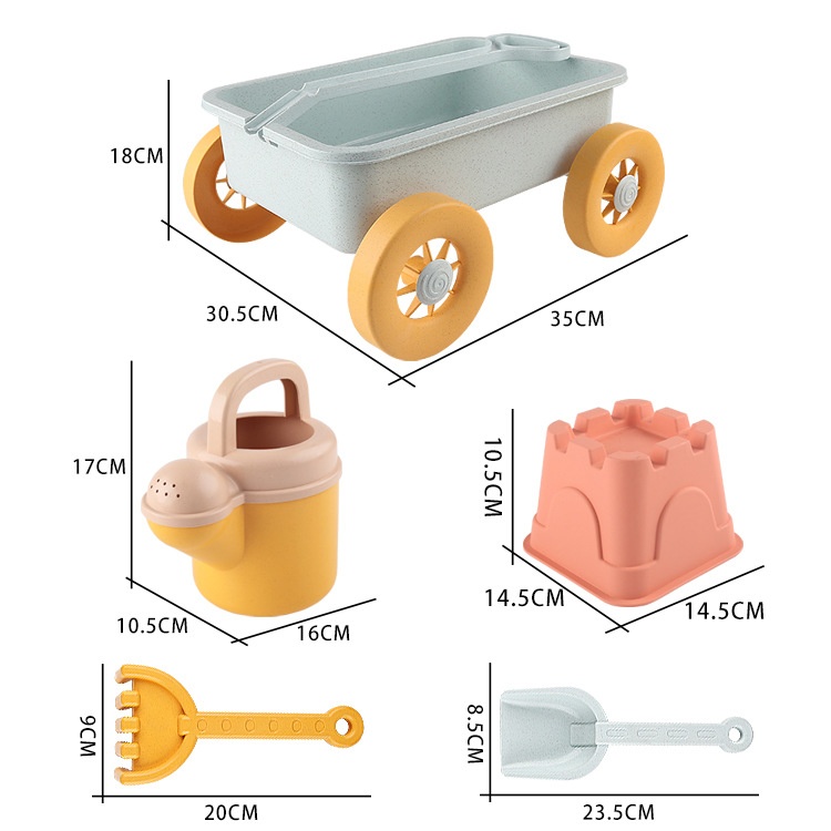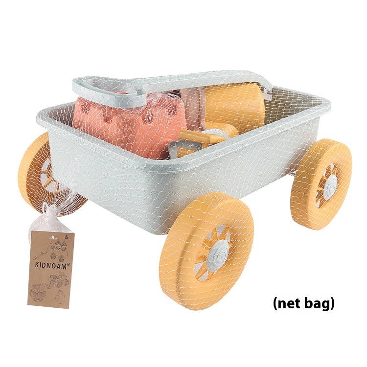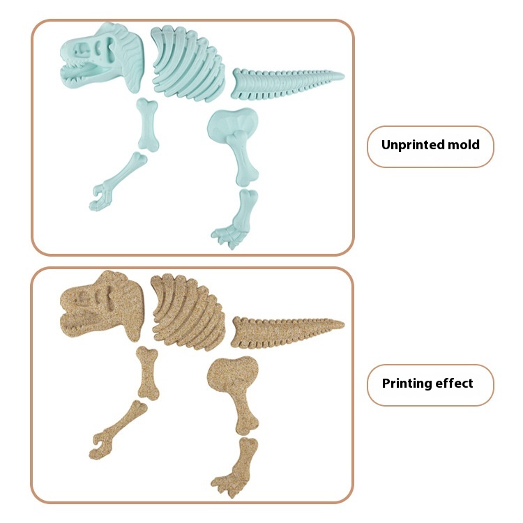 Beach Toys Children's Handcart Beach Bucket Sand Shovel Dinosaur Skeleton Model Sand Print Toy Straw Material Set