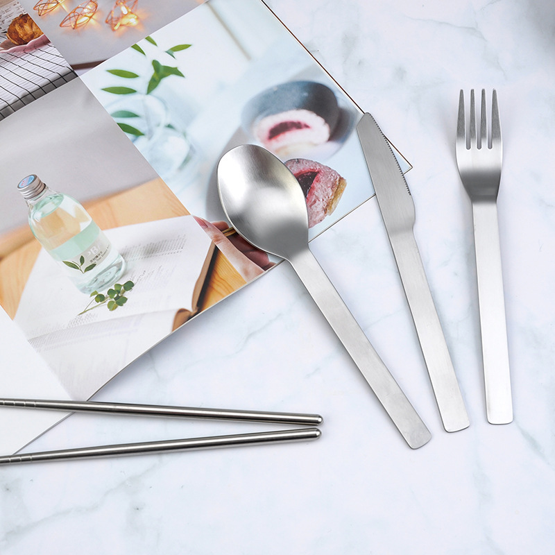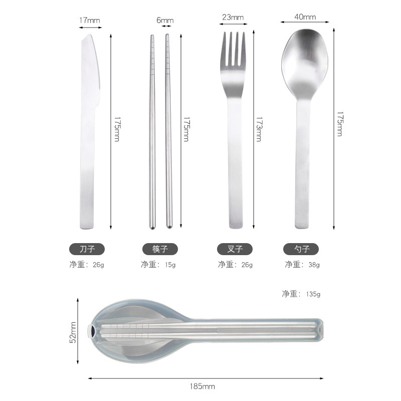 430 Stainless Steel Cutlery Four-piece Set Student Steak Knife And Fork Chopsticks Storage Utensils Travel Outdoor Portable Cutlery