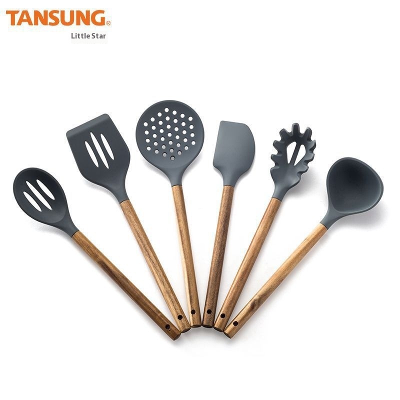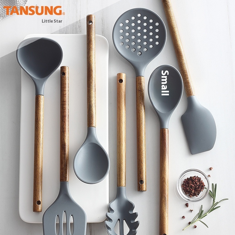 Kitchen Utensils Silicone Kitchen Utensils Cooking Spoon Spatula Spatula Colander Acacia Wood Shovel Wooden Handle Silicone Kitchen Utensils Set