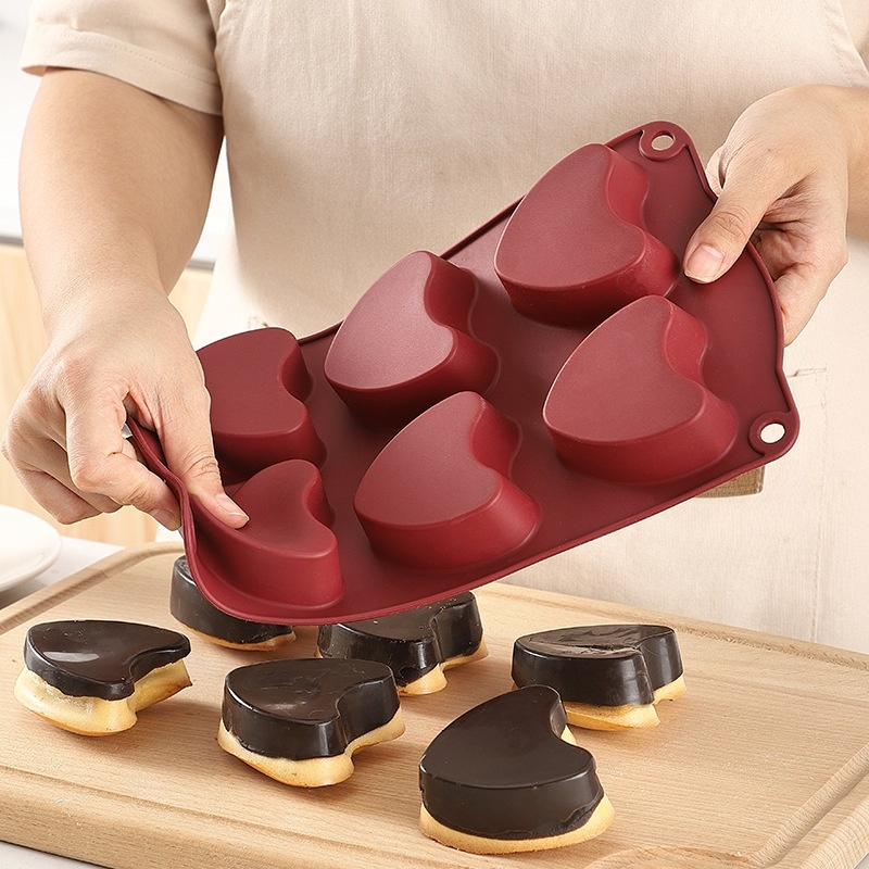 Kitchen Household Cake Mold Red Silicone6 Love Cake Mold Handmade Baking High Temperature Resistant Special Mold