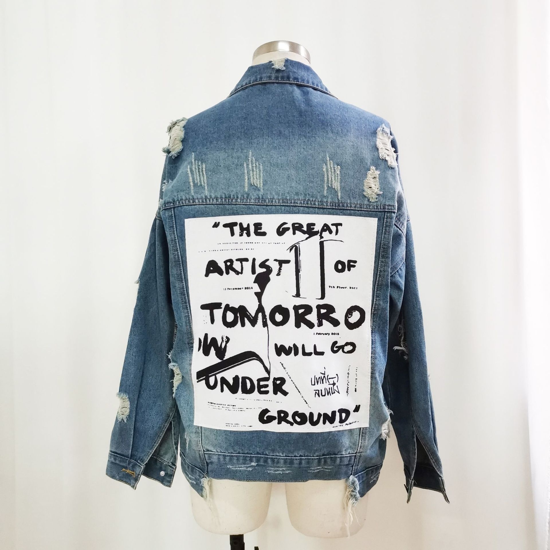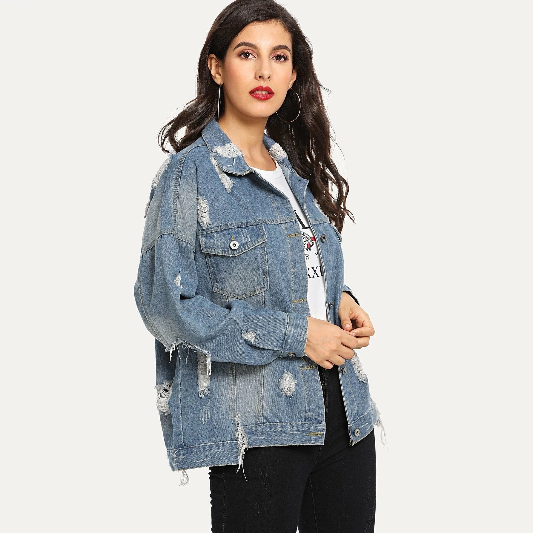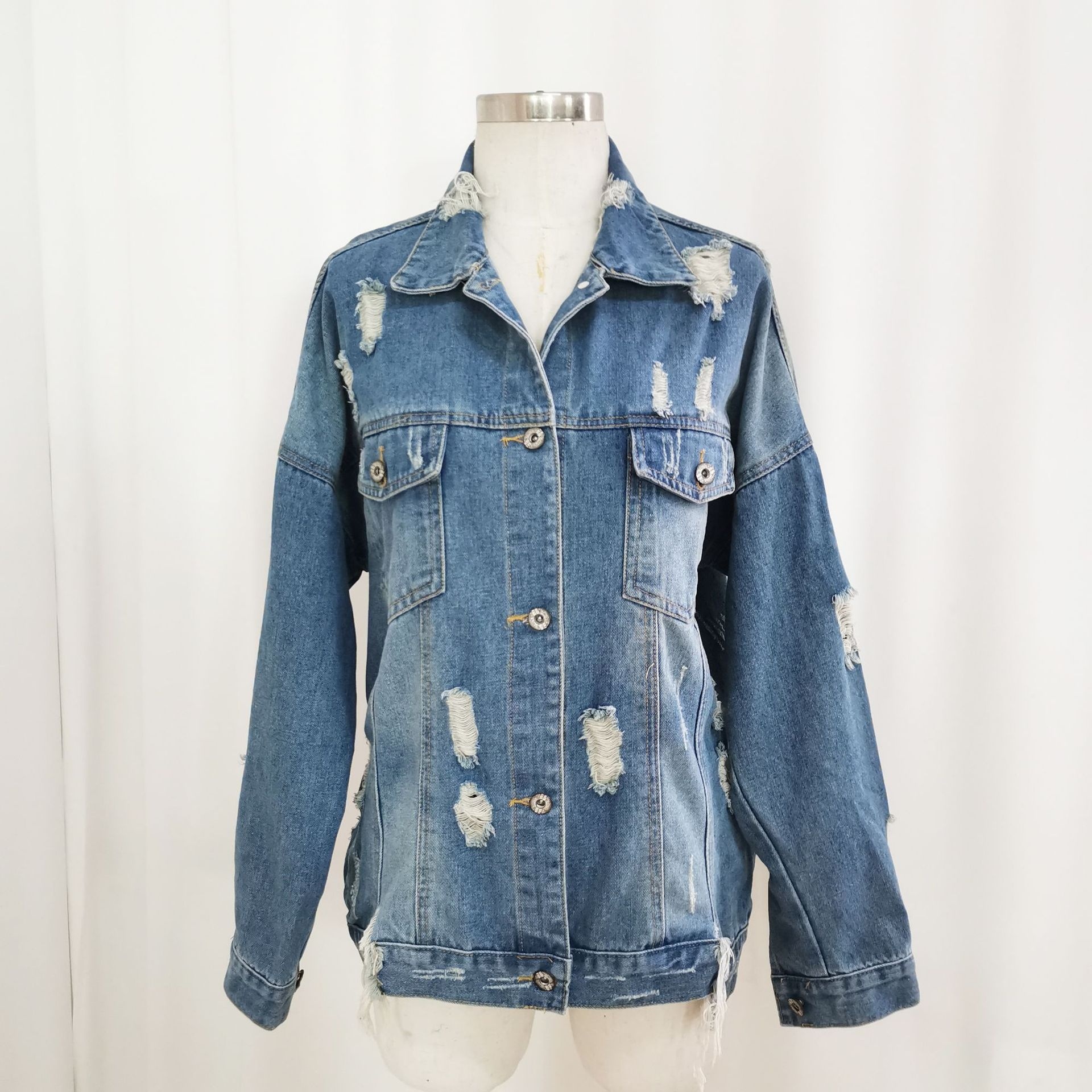 S097#European And American Casual Ripped Denim Jacket Style Old Denim Jacket