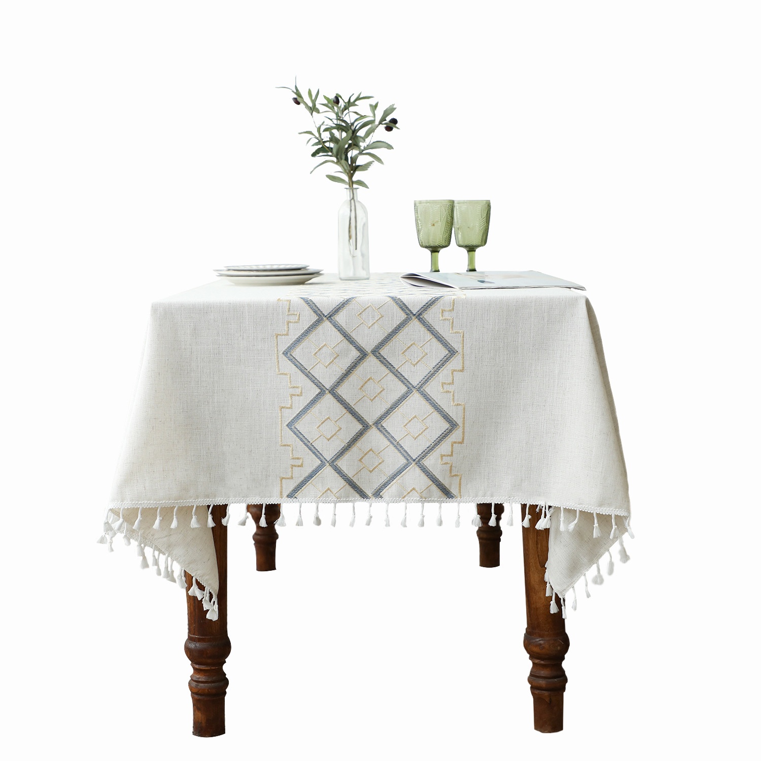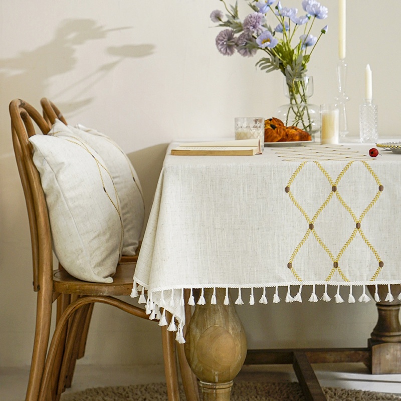 SCotton And Linen Tablecloth Nordic Tassel Three-dimensional Embroidery Rectangular Party Picnic Tablecloth Dery
