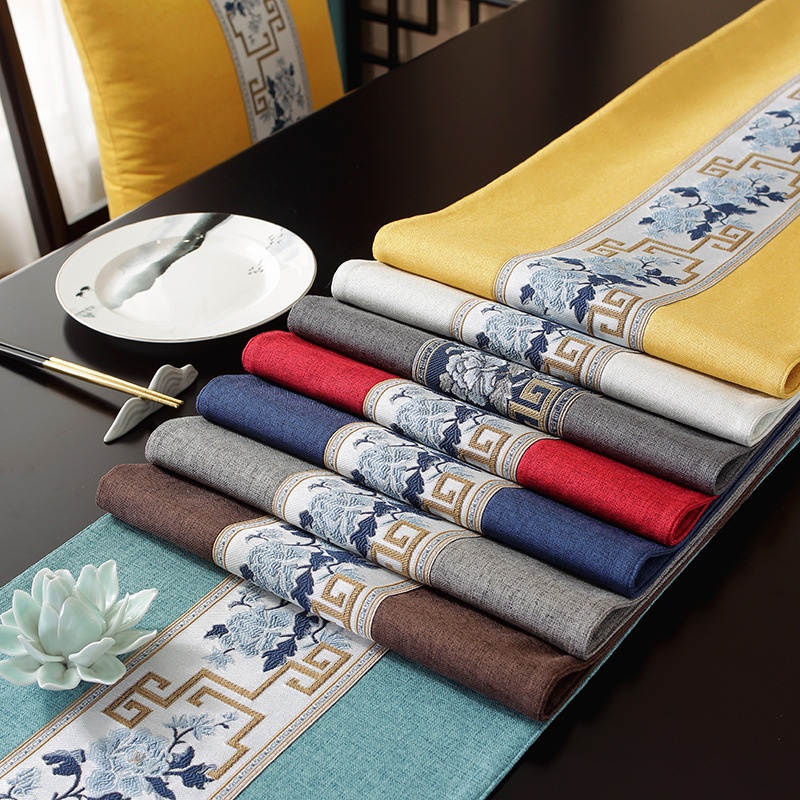 Waterproof Embroidery Chinese Style Table Flag Chinese Style Tea Table Zen Tea Table Fabric Long Table Cloth Cotton And Linen Tea Table Tea Cloth