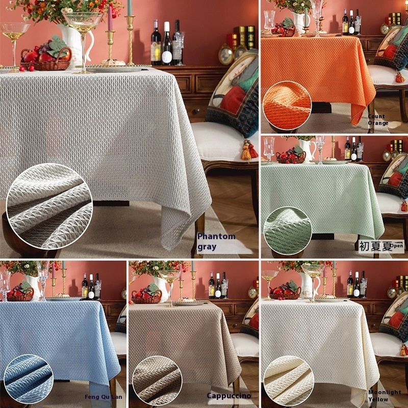 Simple Style Tablecloth Cotton And Linen Waffle Solid Color Tablecloth European Bedside Table Dust Cover Cloth Coffee Table Table Mat