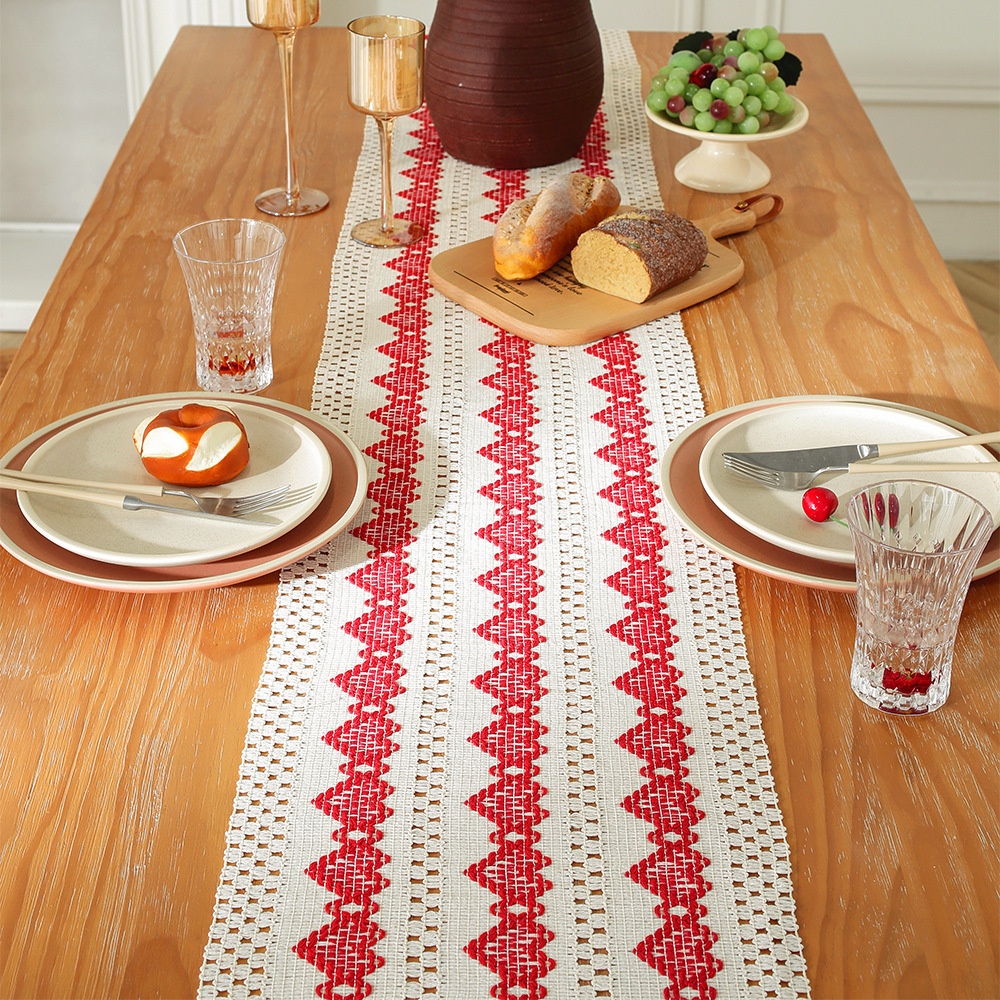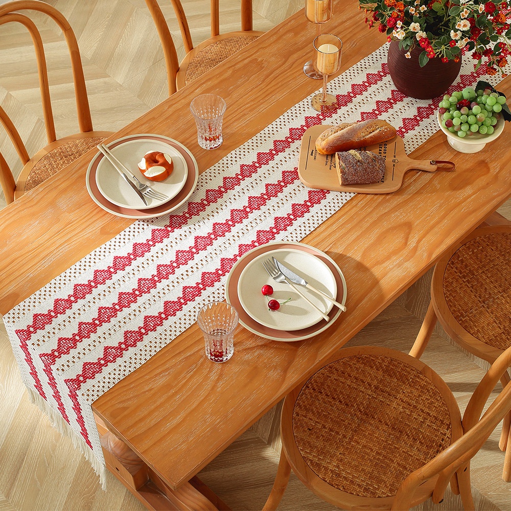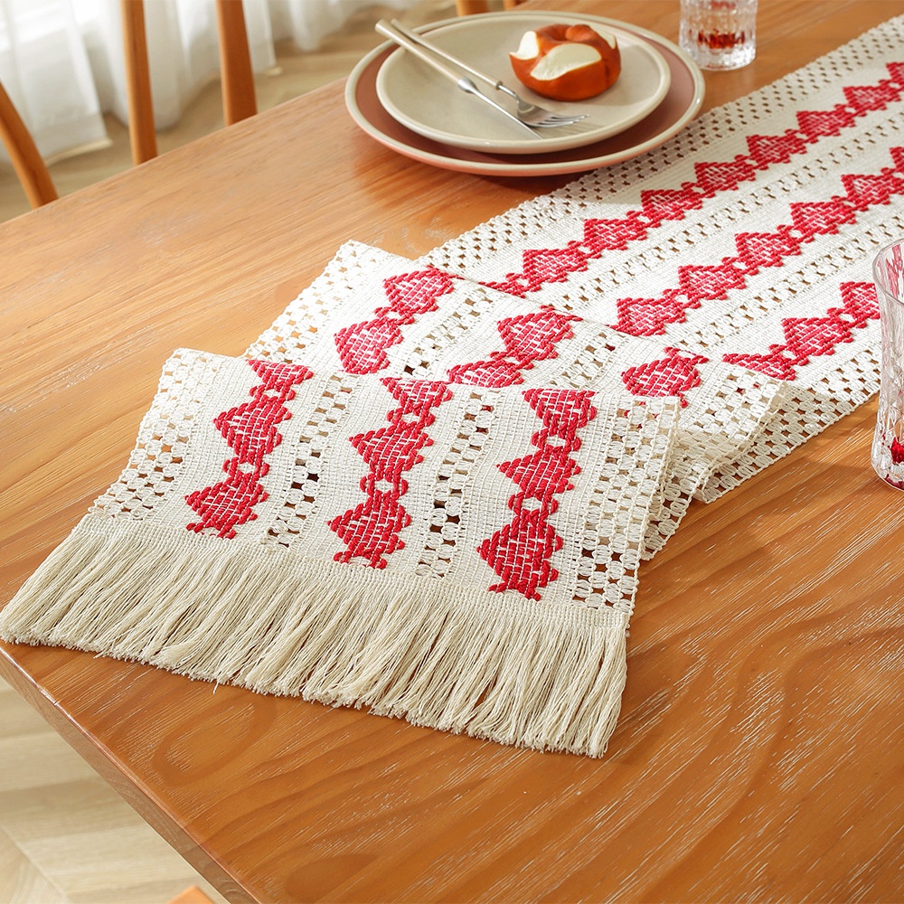 Love Embroidery Cotton And Linen Style Table Flag Tassel Light Luxury Coffee Table Cloth American Retro Table Cloth Long Table Cloth Tablecloth