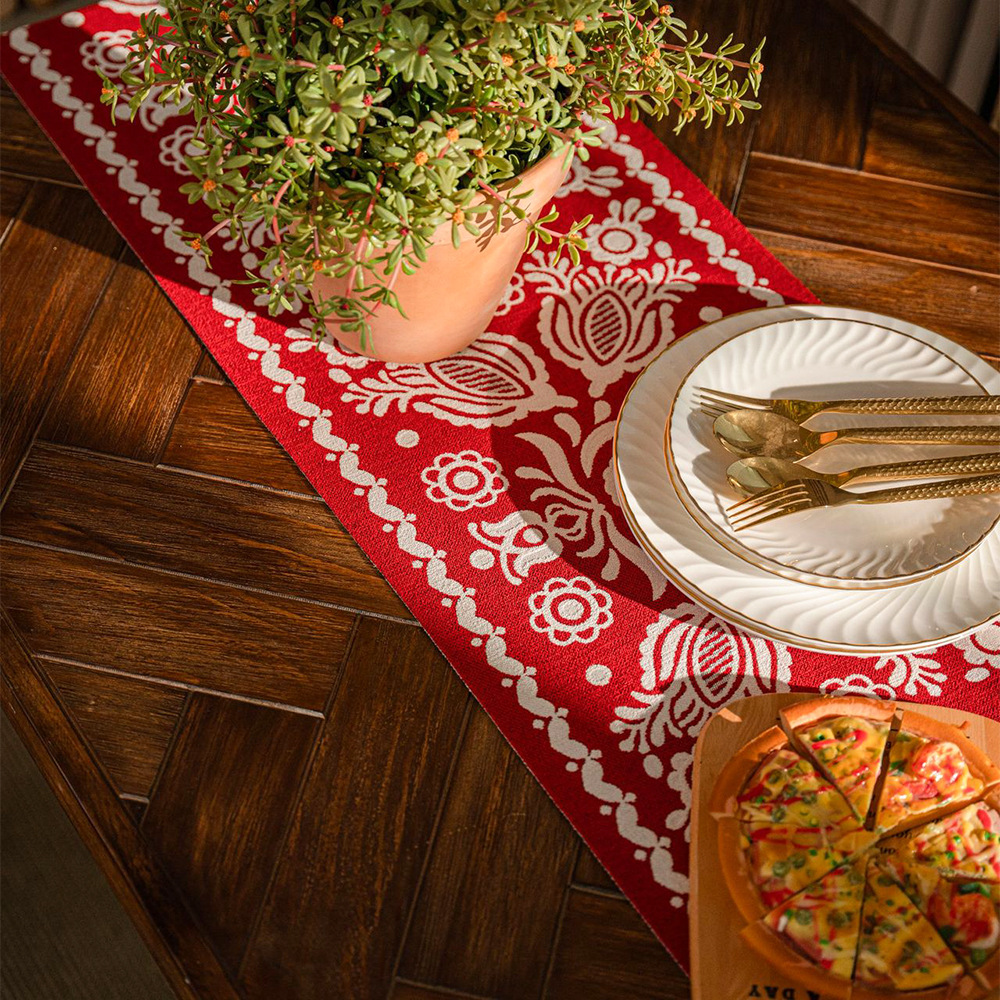 Jacquard Chinese Table Runner Family Happy Tea Table Red Tea Table Cloth Long Tea Table Cloth Festive Tea Table Mat