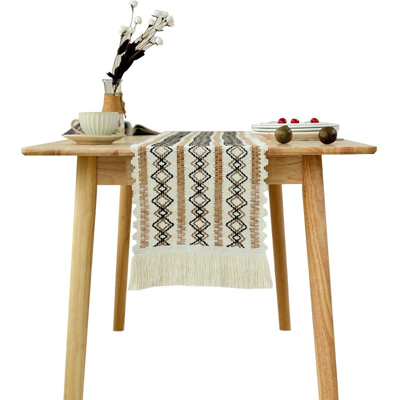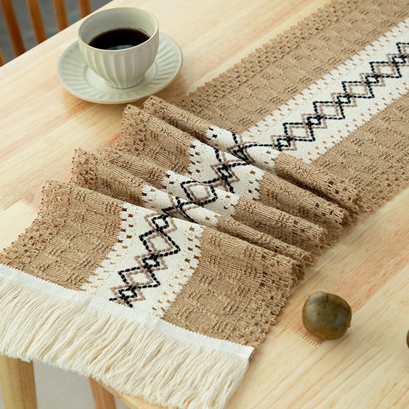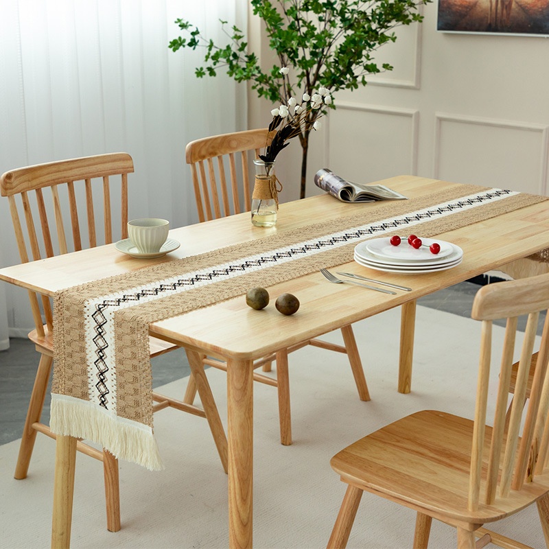 Cotton And Linen White Coffee Tassel Table Runner Long Strip Fabric Piano Cover Coffee Table Table Cloth Dining Table TVCabinet Table Runner