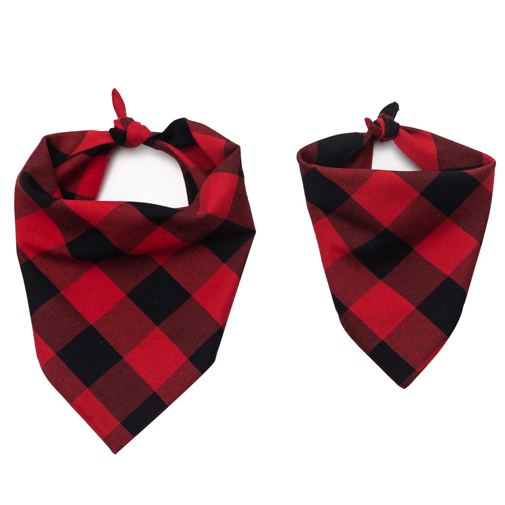 Pet Scarf Bib Triangle Bib Red Plaid Dog Handkerchief Cotton And Linen Scarf
