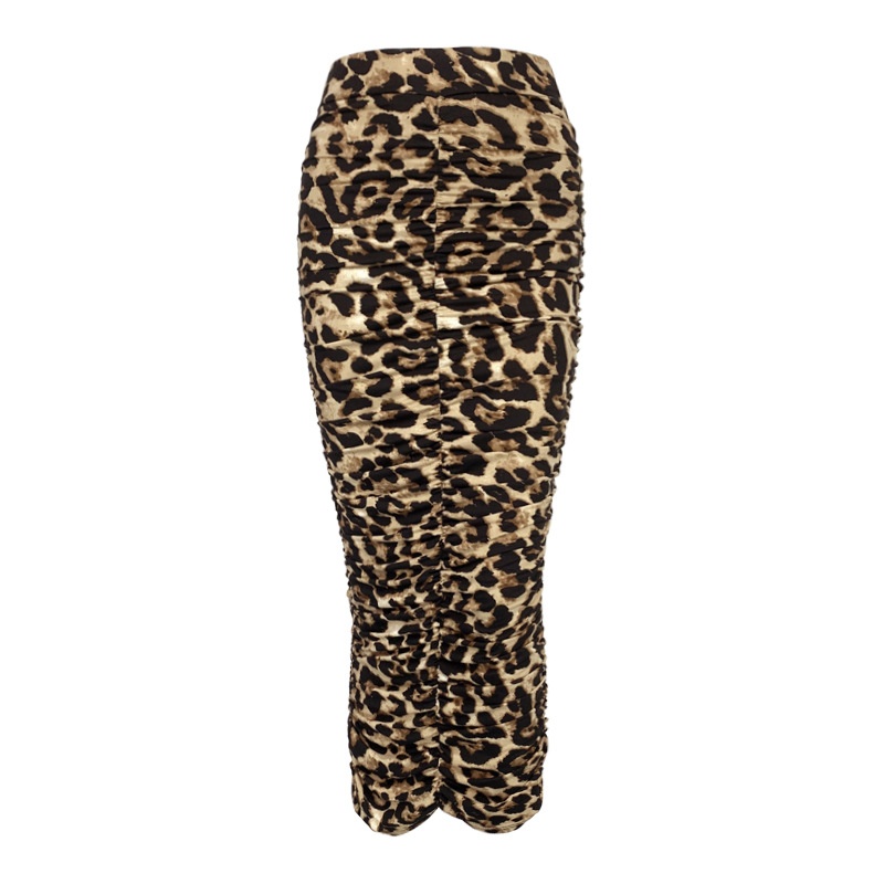 Spring And Summer High Waist Leopard Print Skirt European And American Fashion Sexy Tight Pleated Slit Midi Skirt
