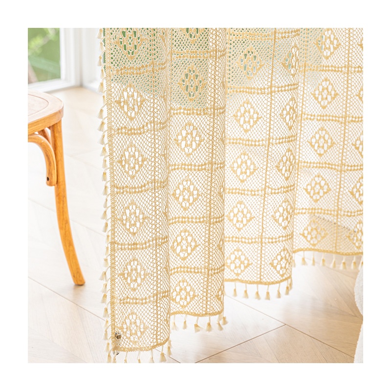 American Style Fine Woven Hollow Lace Yarn Crochet Beige Window Screen Semi-transparent Living Room Balcony Bedroom Finished Bay Window
