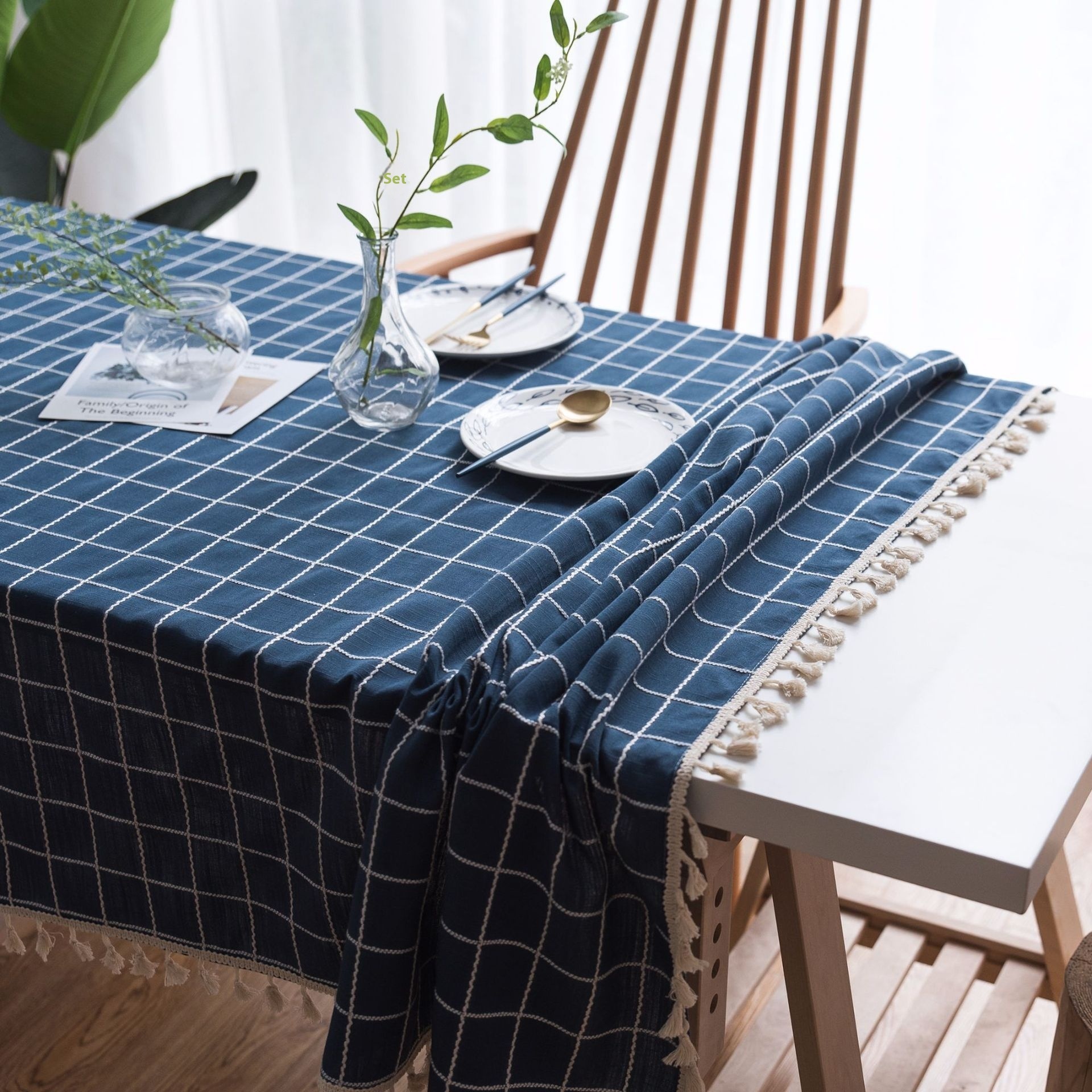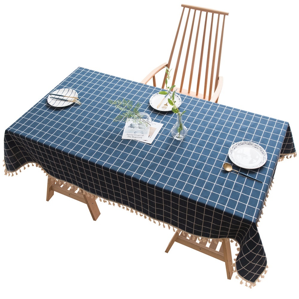 Japanese Simple Tablecloth Style Dark Blue Three-dimensional Embroidery Rectangular Linen Tablecloth Dustproof