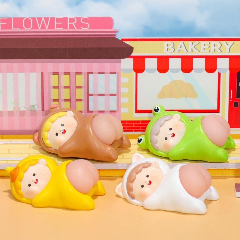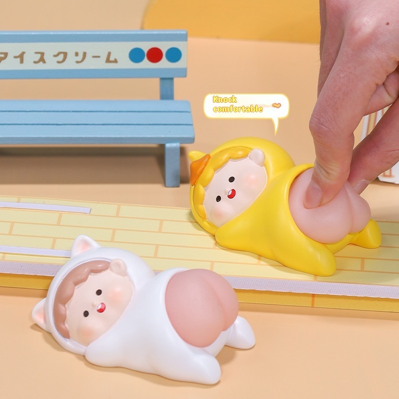 QElastic Buttocks Desktop Ornaments Office Decompression Toys Good Pinch Soft Elastic Buttocks Doll Cute Cartoon Gift