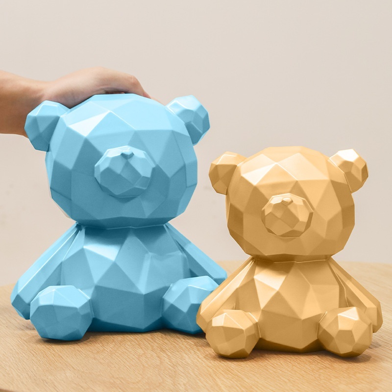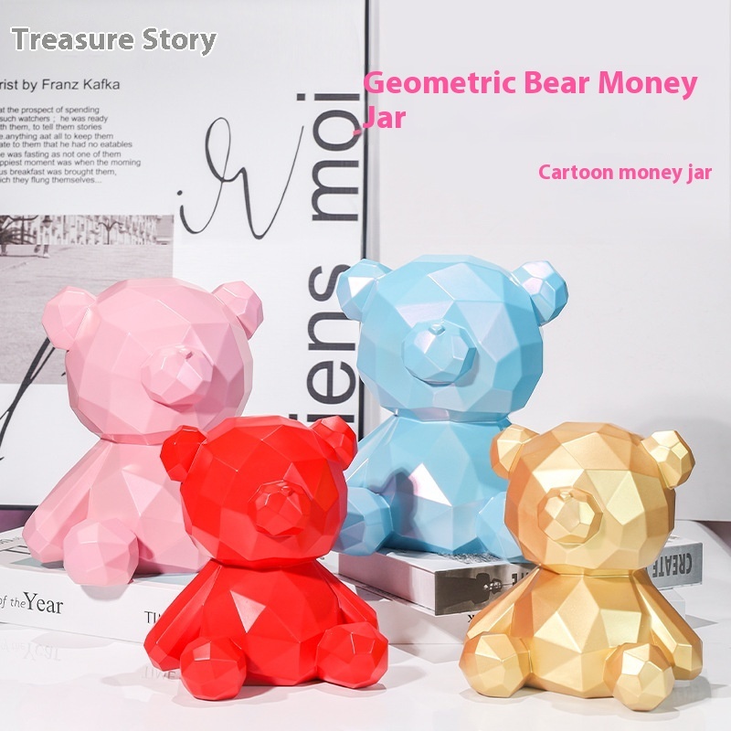 Lucky Geometric Bear Piggy Bank Children's Creative Resin Piggy Bank Only In,No Out,Coin Jar Can Be In And Out