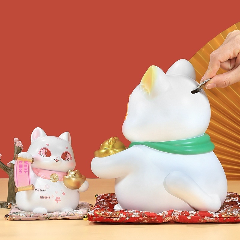 Rich And Lucrative Lucky Cat Piggy Bank Children's National Style Large Capacity Piggy Bank Resin Crafts Creative Gifts