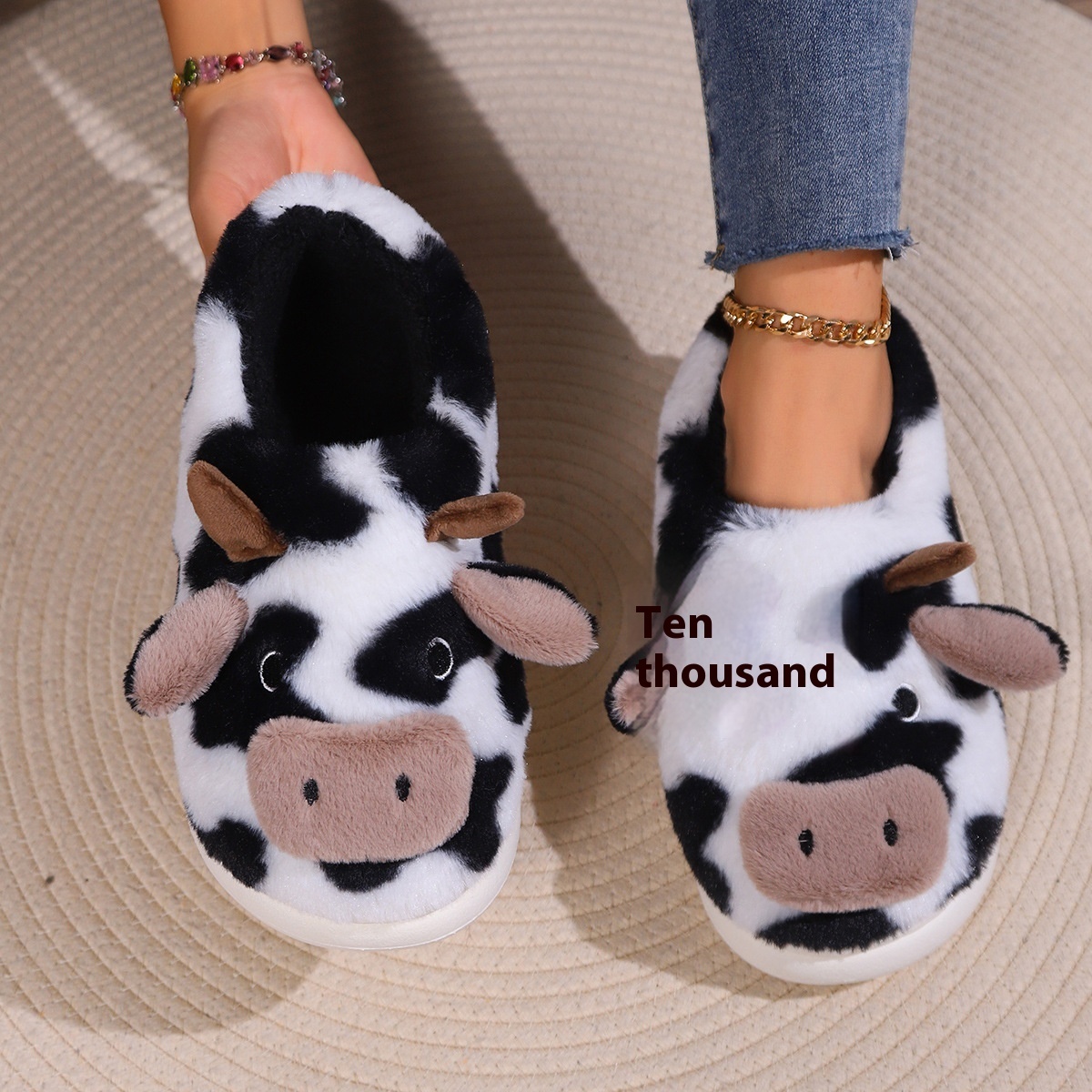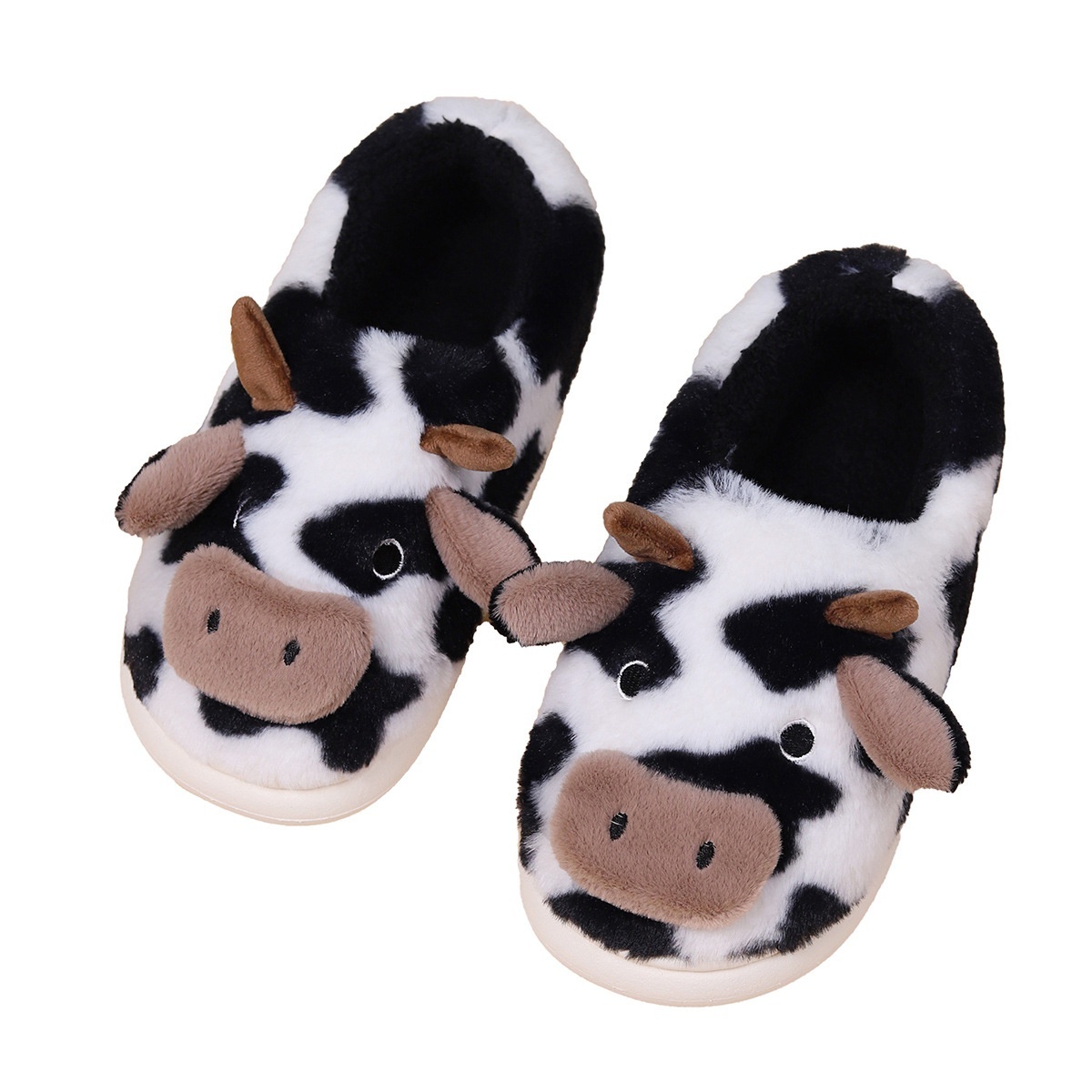 Thickened Heel Cartoon Cow Fur Slippers Winter Home Leisure Indoor Home Furnishings Warm And Non-slip