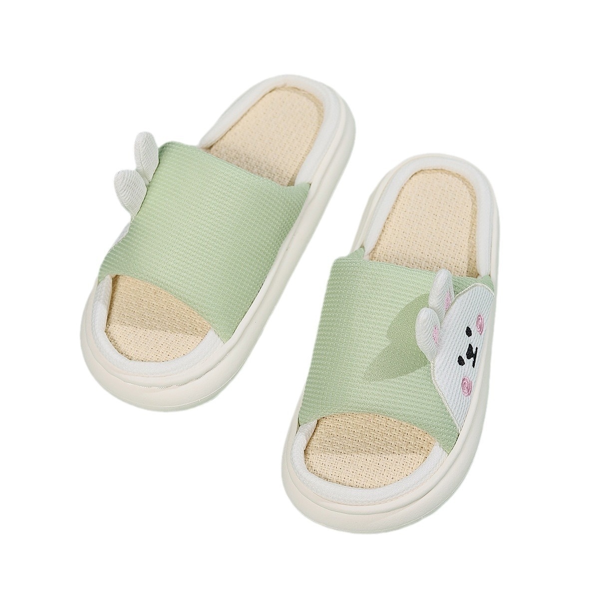 Home Soft Bottom Linen Slippers Non-slip Cute Cartoon Bunny Open Slippers
