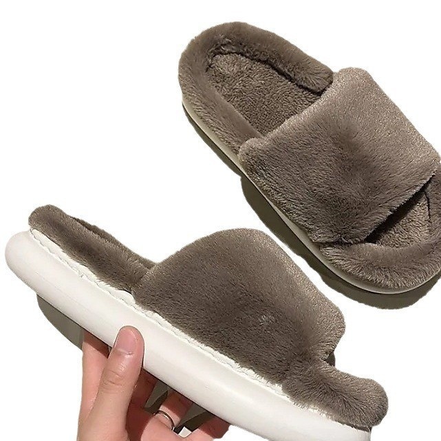 Net Red Thick Bottom Fur Slippers Indoor Home Cotton Slippers Women's Outdoor Wear Four Seasons Thick Plush Open Slippers