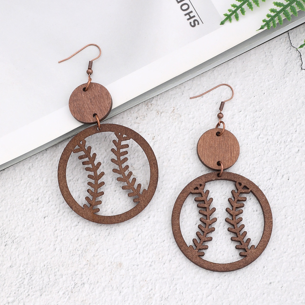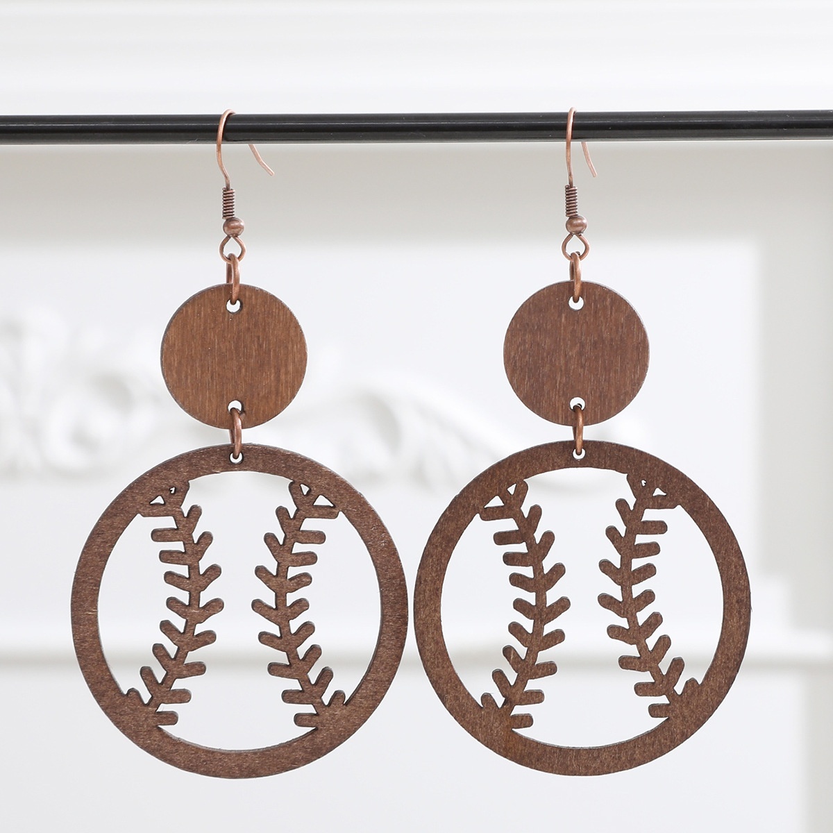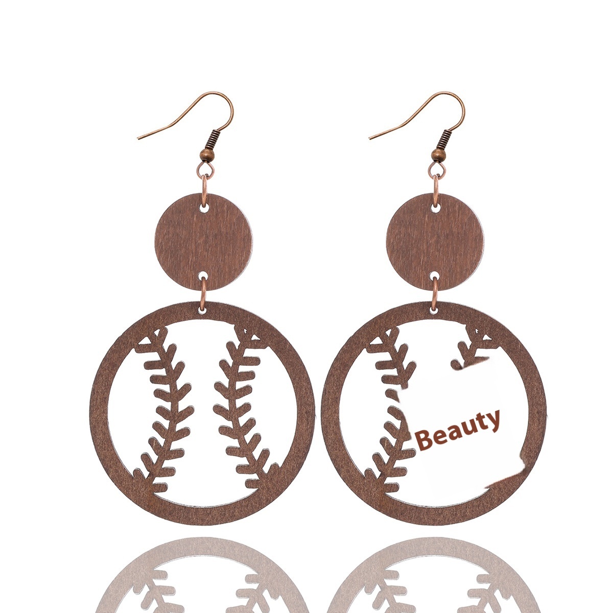 European And American Jewelry Water Drop Earrings Retro Hollow Wood Sports Style Baseball Rugby Earrings