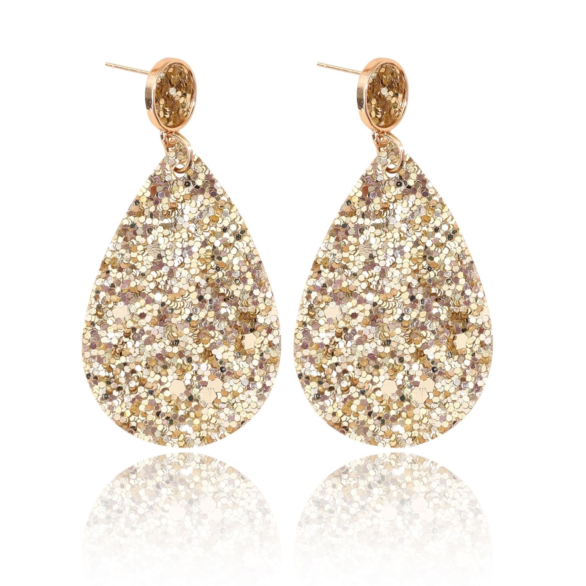 Gold Sequ,Glitter,Leather,PU,Teardrop-shaped Earrings,European And American