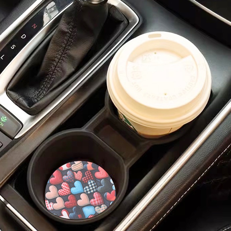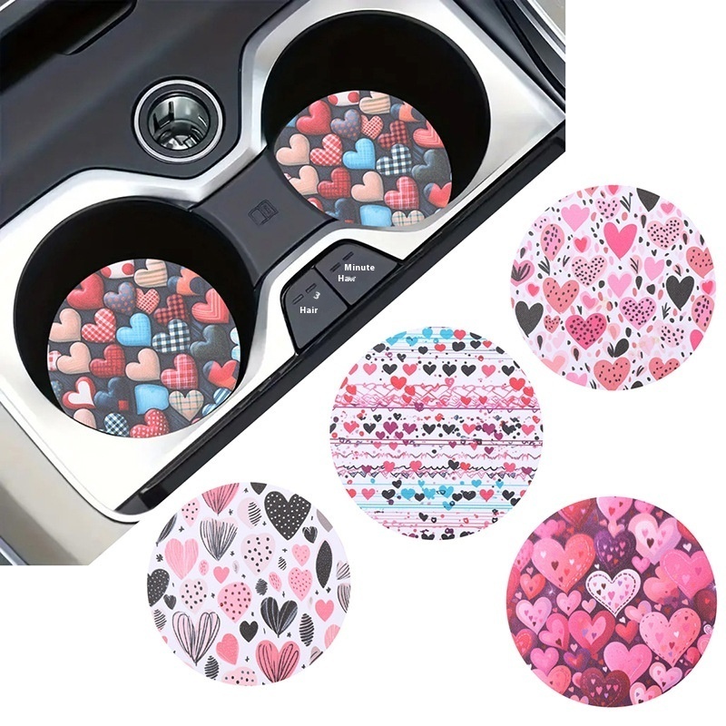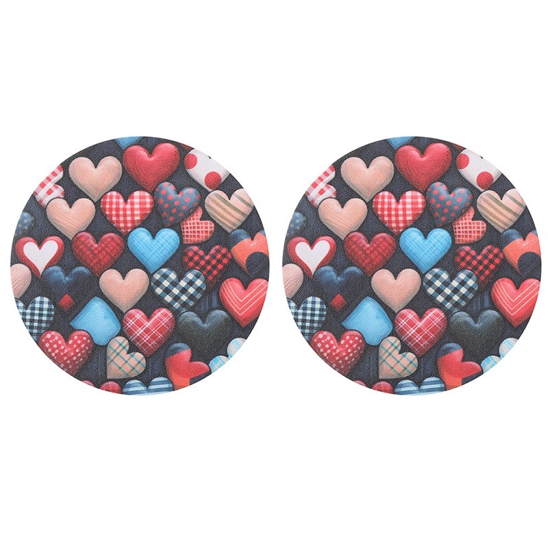 Valentine's Day Pink Love Pattern Round Leather Wear-resistant Coaster