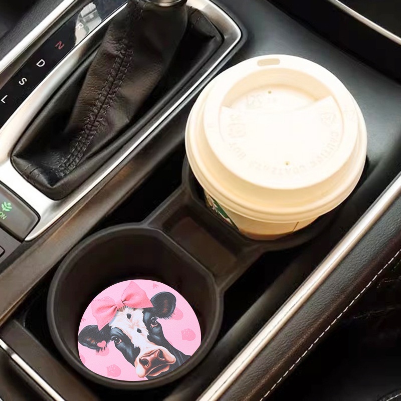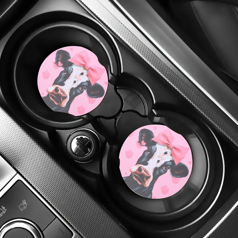 Bow Bull Head Love Milk Tea Ice Cream Pattern Leather Coaster