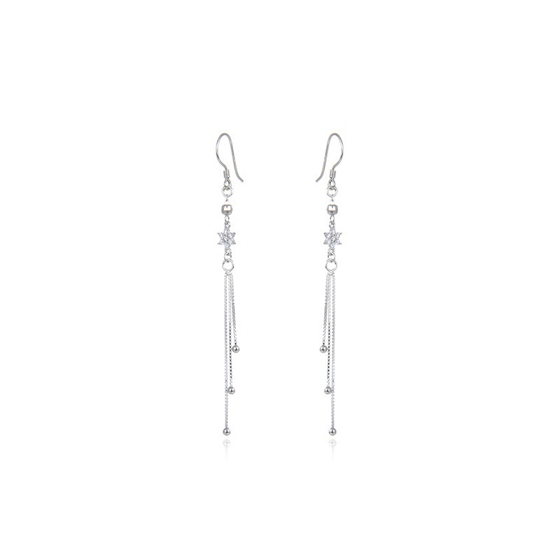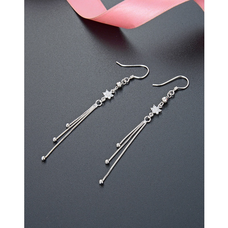 Japanese And Korean Style Piaoxian Fashion Long Tassel Earrings S925 Silver Inlaid Zircon Geometric Round Bead Earrings Earrings Female