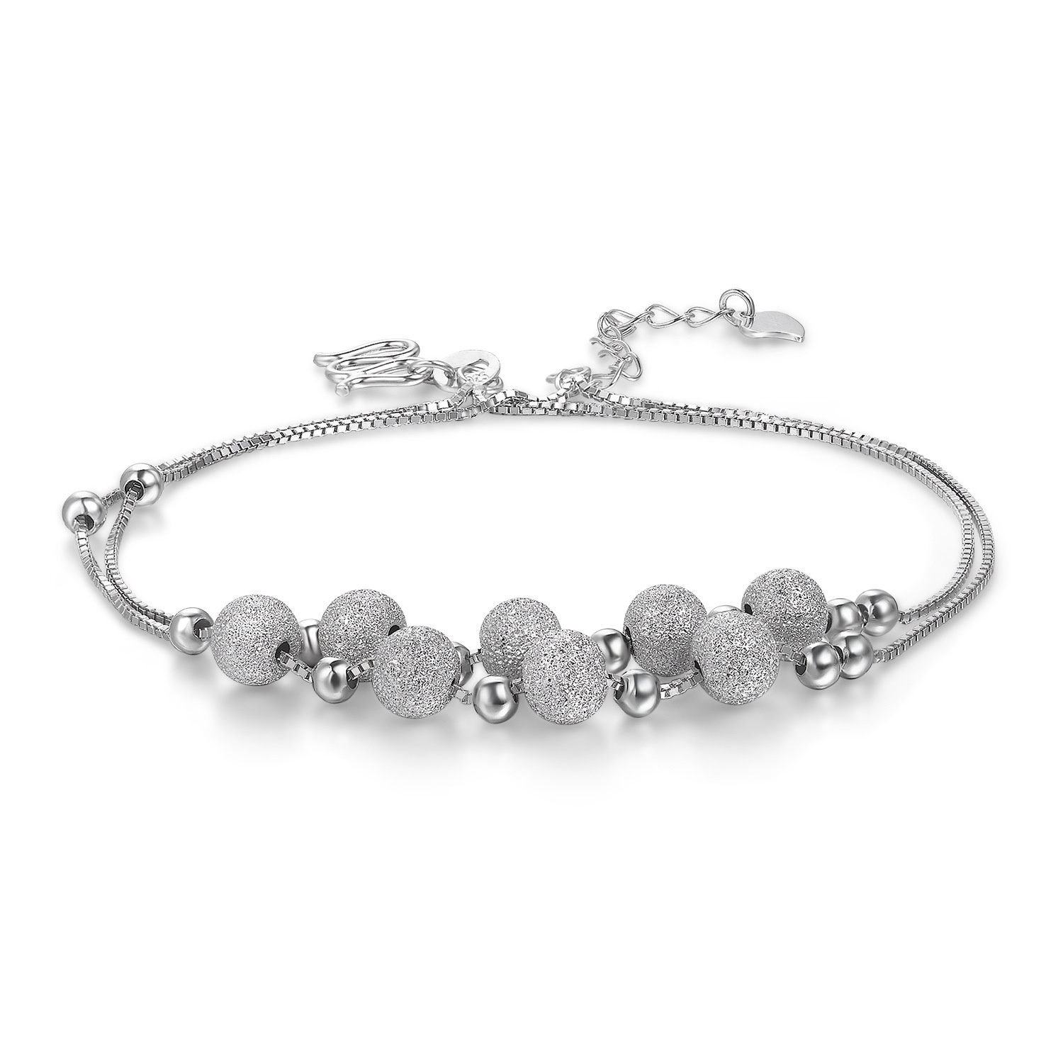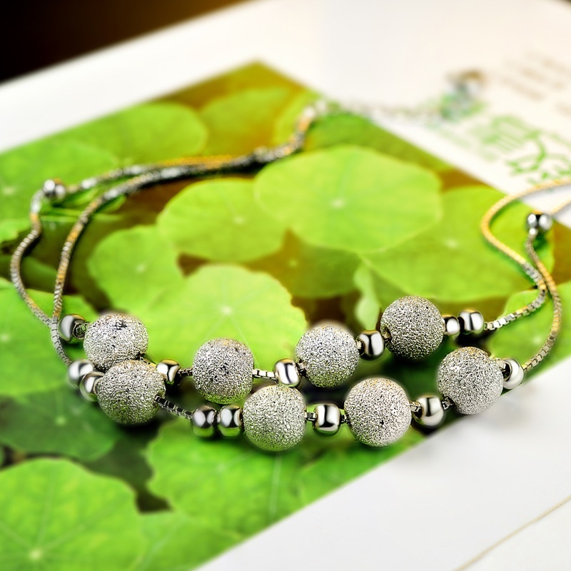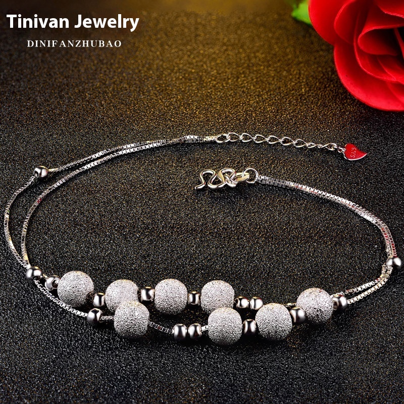 S925 Silver Anklet Fashion Korean Round Bead Frosted Small Fresh Foot Ornaments