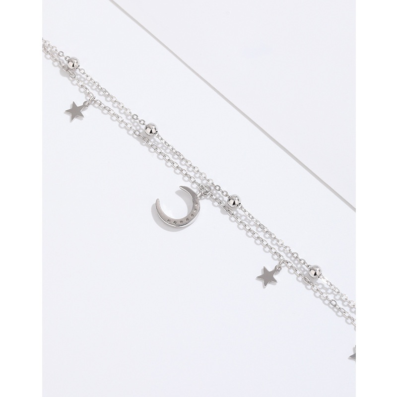 925 Sterling Silver Double-layer Star And Moon Bracelet For Girls Sweet And Fresh Niche Design Girlfriend Light Luxury High-end Jewelry