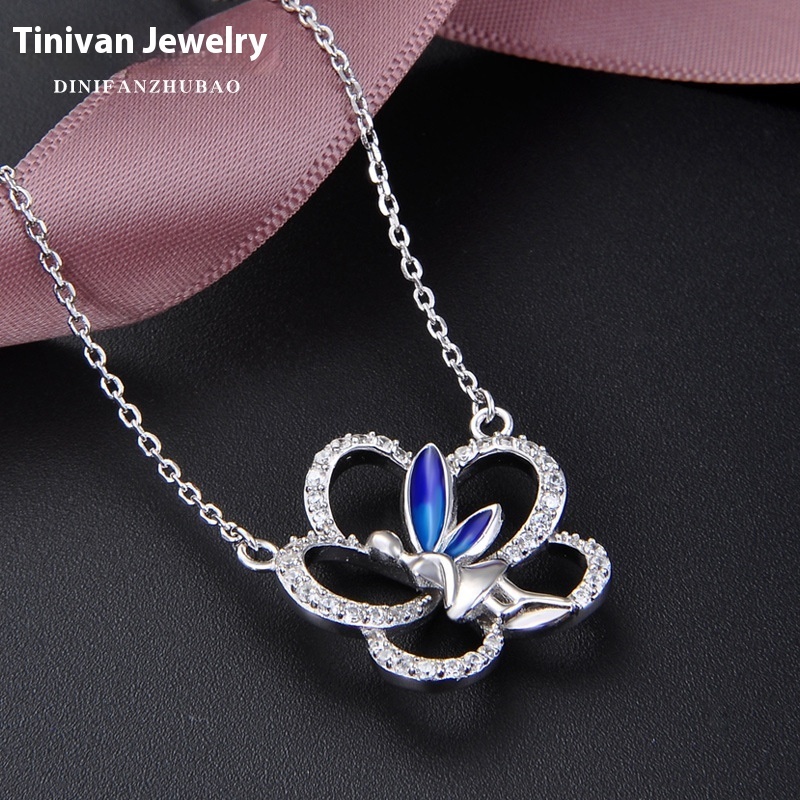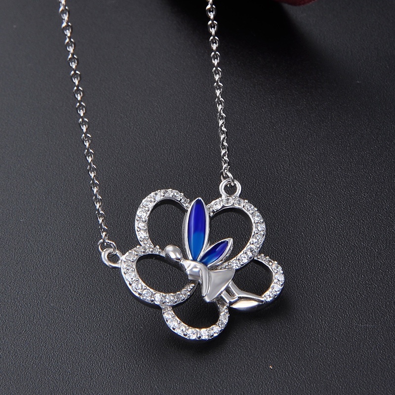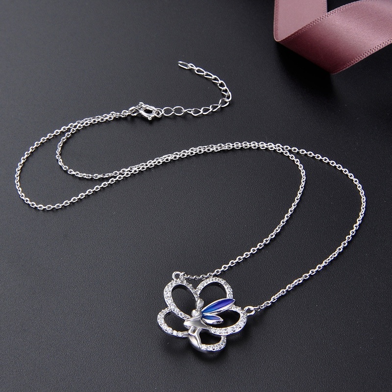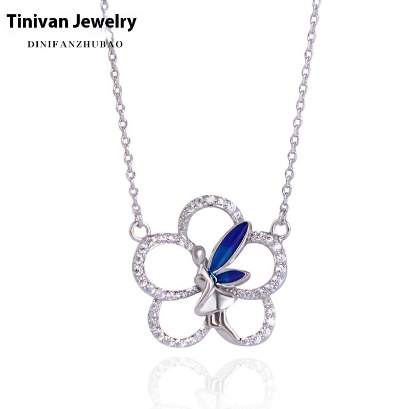 European And American E-commerce Hot Products Sterling Silver Necklace Female S925 Pendant Drip Glue Butterfly Jewelry