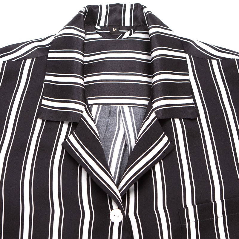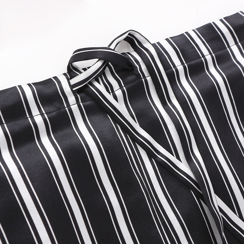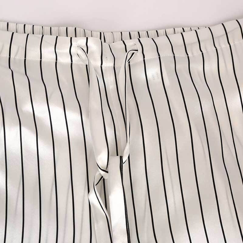 Butterfly Embroidery19 Momme Men's Silk Pajamas Set Striped Print Long Sleeve Trousers100%Mulberry Silk