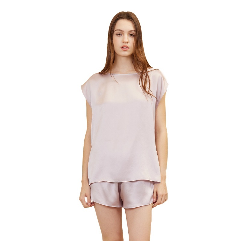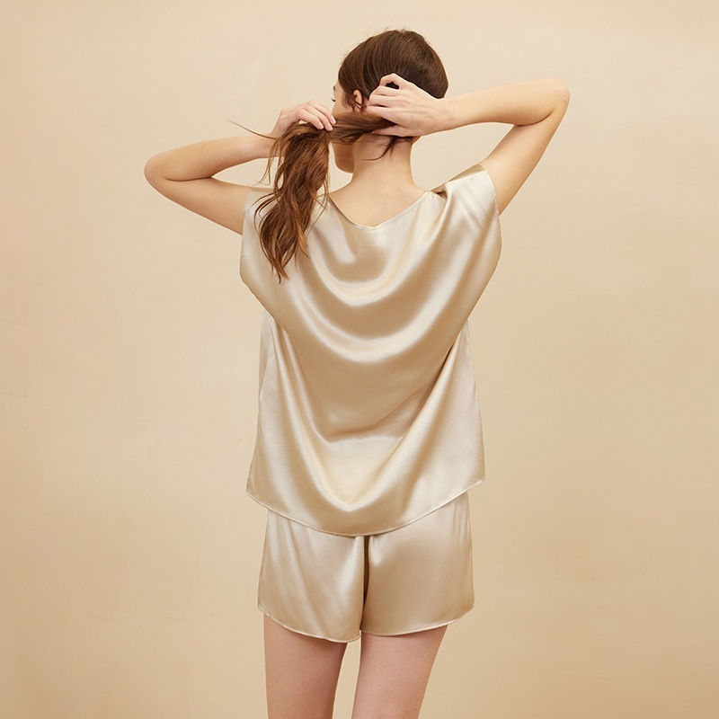 Butterfly Embroidery100%Mulberry Silk Sleeveless Shorts Suit Summer Simple Casual Heavy Silk Pajamas Home Clothes For Women