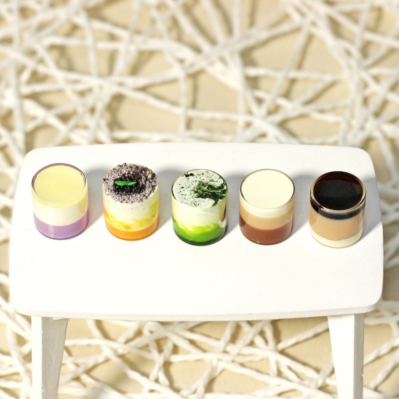 Miniature Food And Play Scene Dollhouse Accessories Mini Mousse Cake Cup Net Celebrity Matcha Tiramisu Model I307