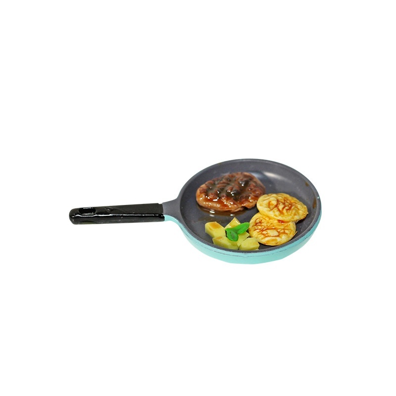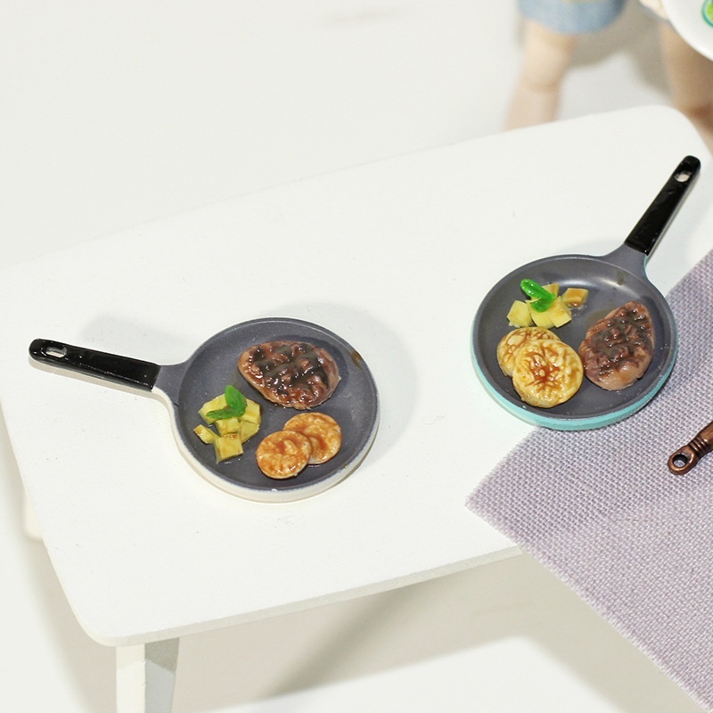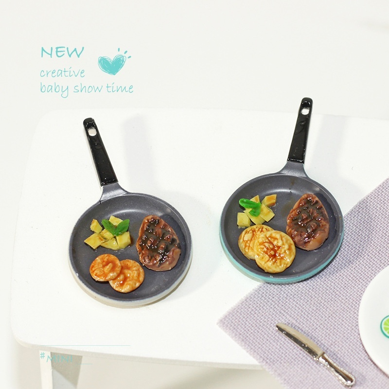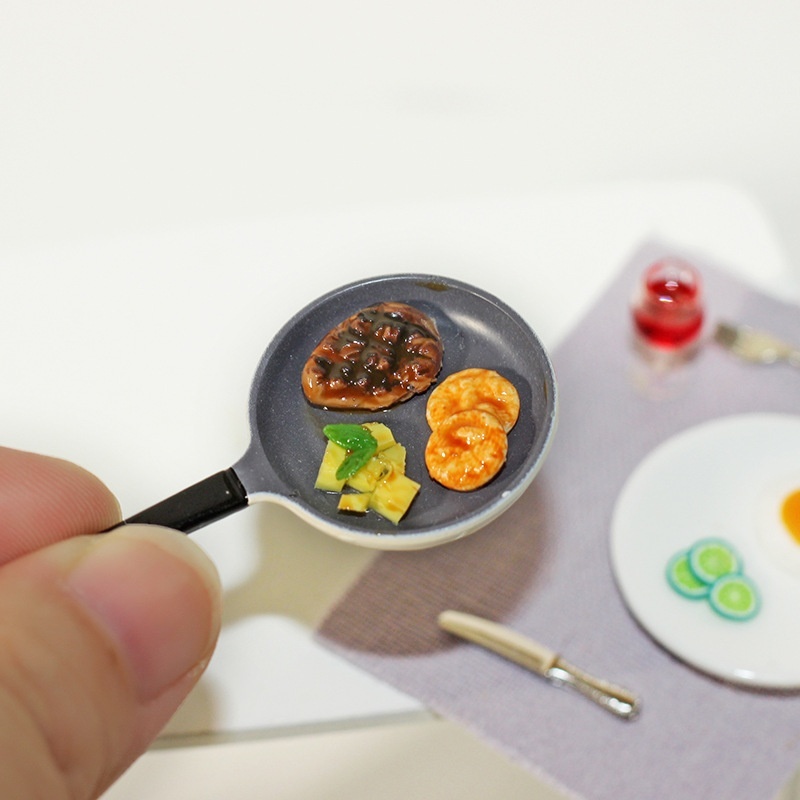 1:12 Miniature Food Toy Model Ornaments Ob11 Doll House Accessories Alloy Mini Steak Frying Pan D364