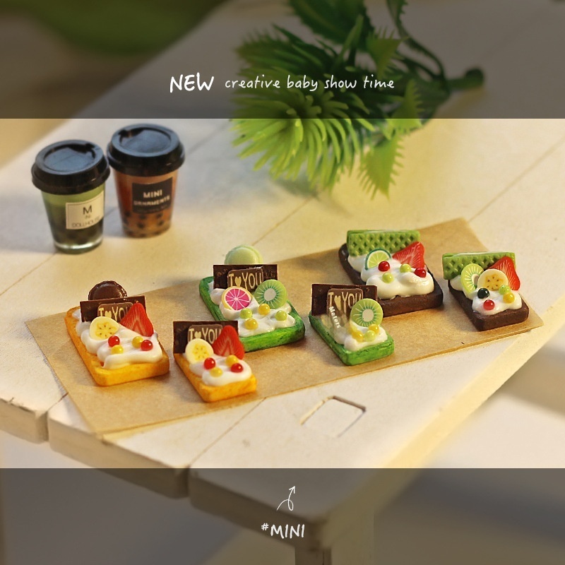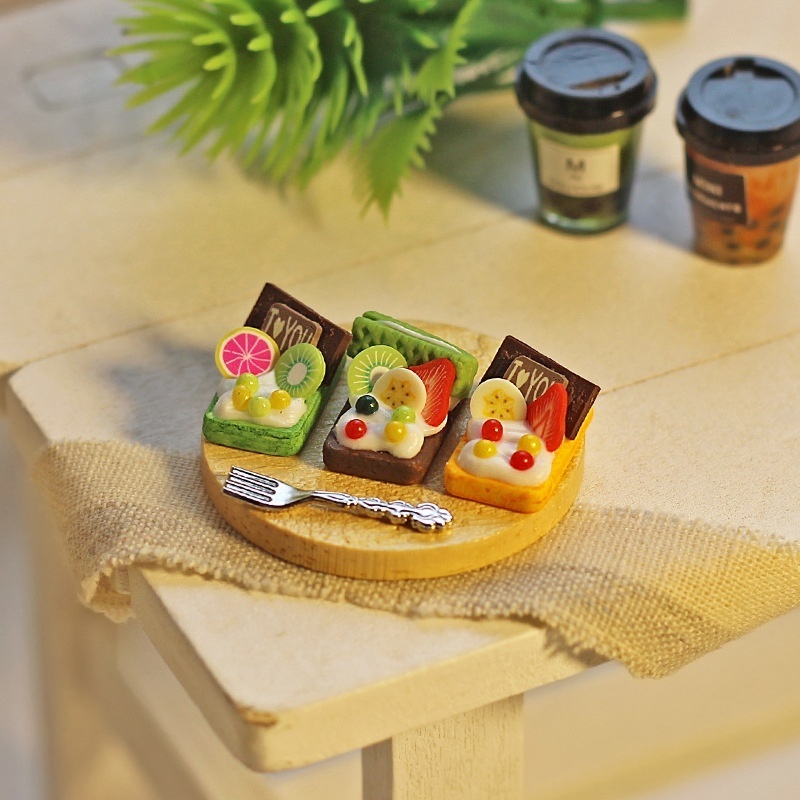 Dollhouse Accessories Ob11 Miniature Model Toy Matcha Chocolate Cheese Dessert Waffle Ornaments I124