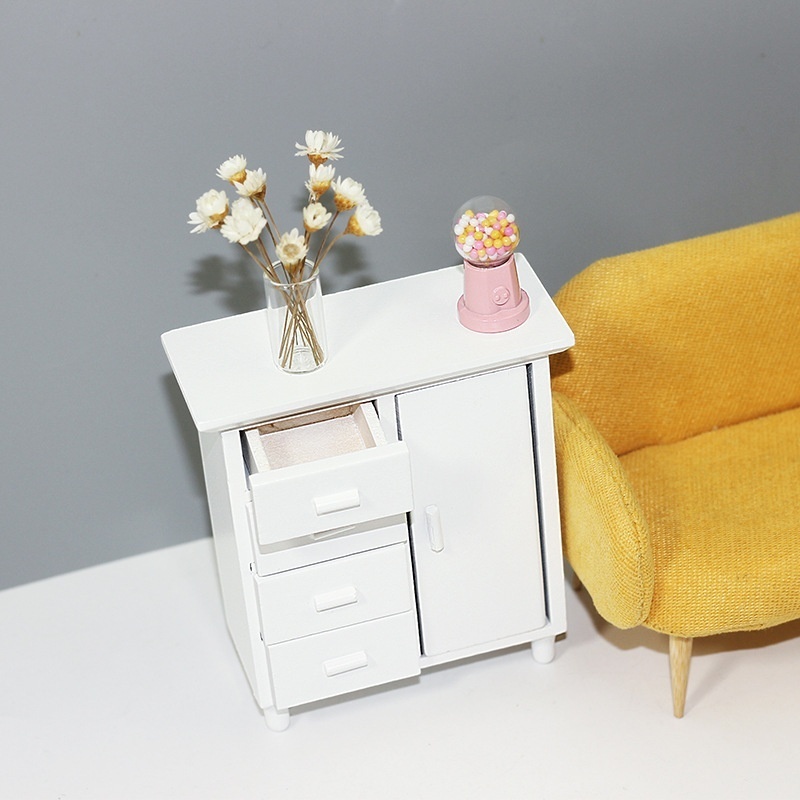1:12 Living Room Shooting Props Doll House Accessories Ob11 Miniature Food Play Toys Mini White Storage Cabinet M146