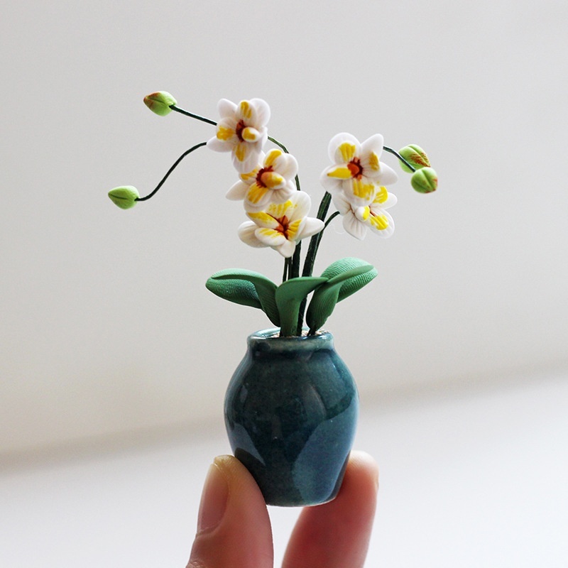 Miniature Garden Scene Shooting Props Model Doll House Accessories Clay Mini White Magnolia Potted K143
