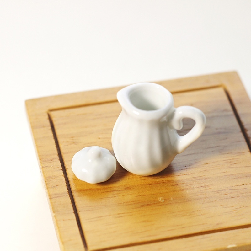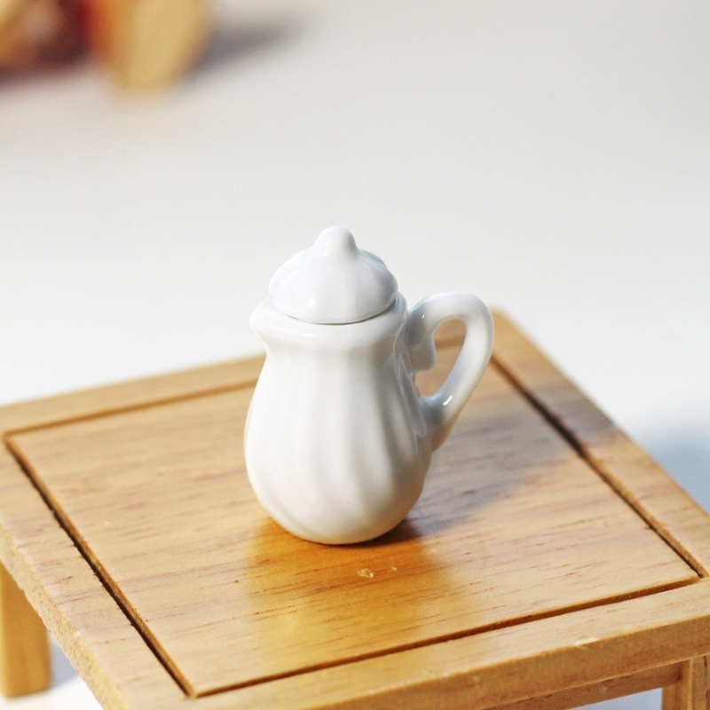 Miniature Home Life Scene Static Toy Model Doll House Accessories Mini White Porcelain Teapot Tea Set C4023