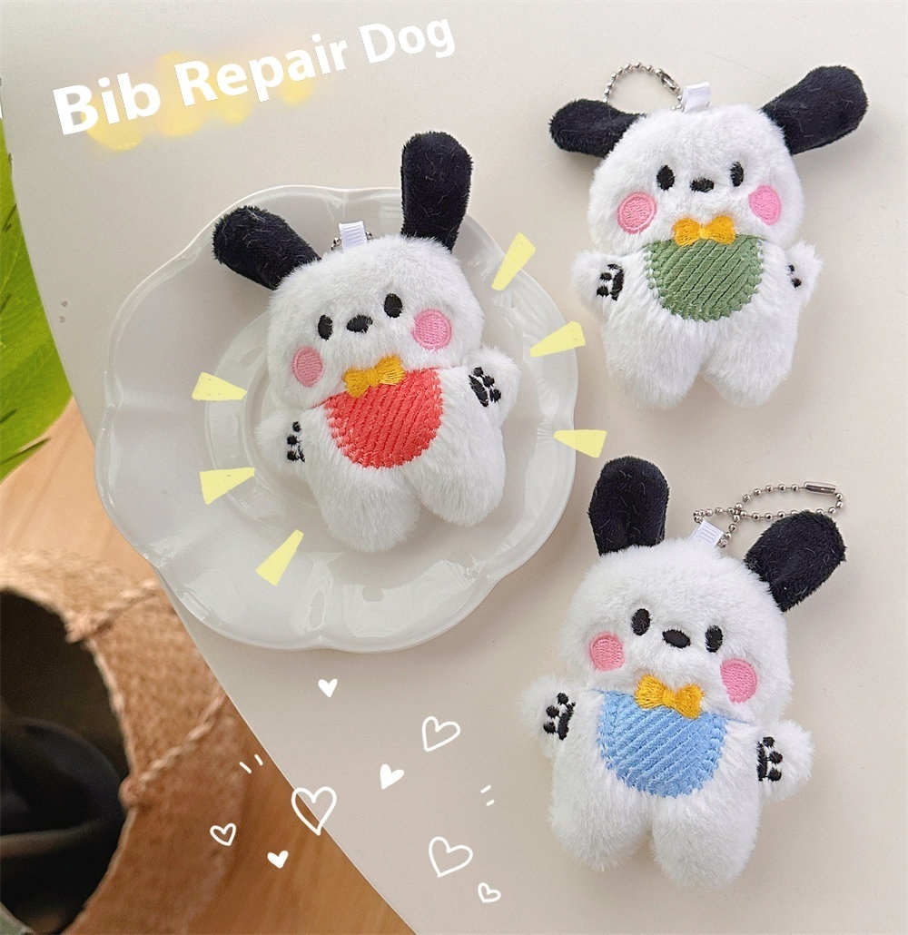 Cartoon Plush Bib,Scared Dog Pendant,Girly School Bag Pendant,Long-haired Creative Doll,Plush Doll