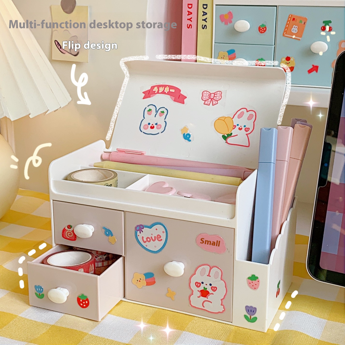 Creative Cute Desktop Storage Box Plastic Drawer-style Office Home Makeup Box Student Storage Box